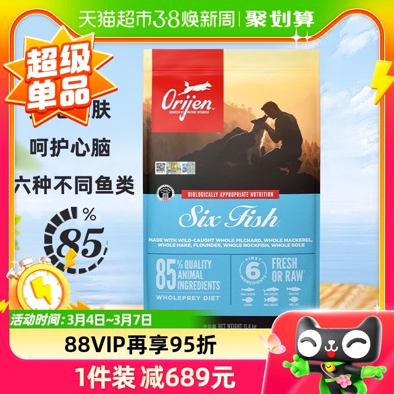 【双11热卖】加拿大Orijen渴望进口狗粮六种鱼美毛幼成全犬11.4kg