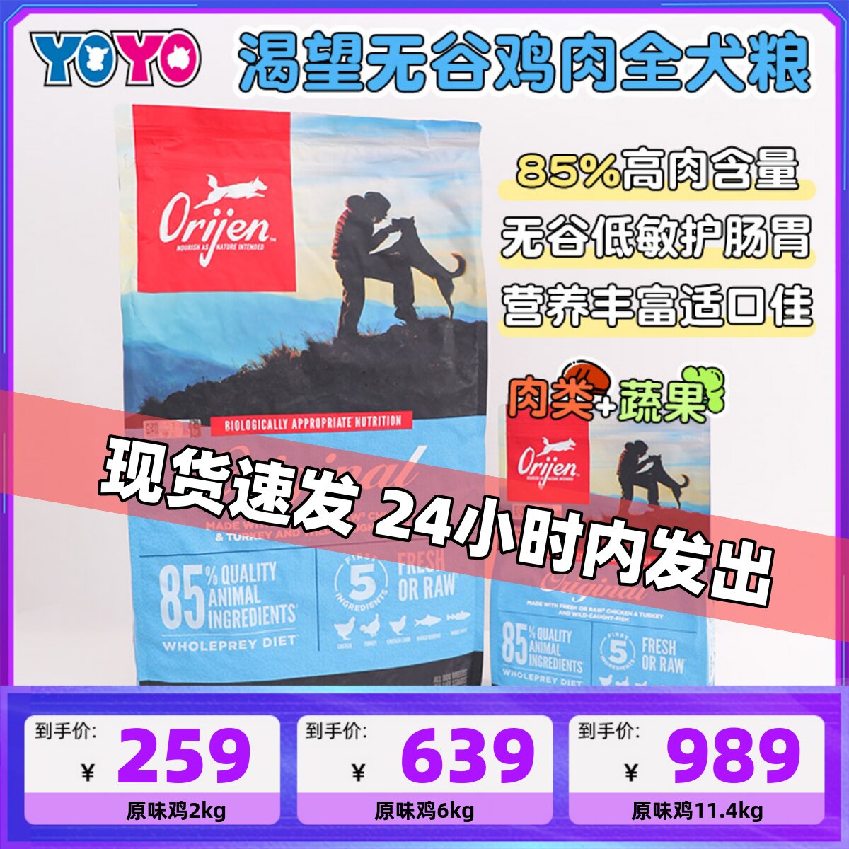 YOYO宠物加拿大Orijen渴望狗粮无谷原味鸡肉低敏消化全犬粮
