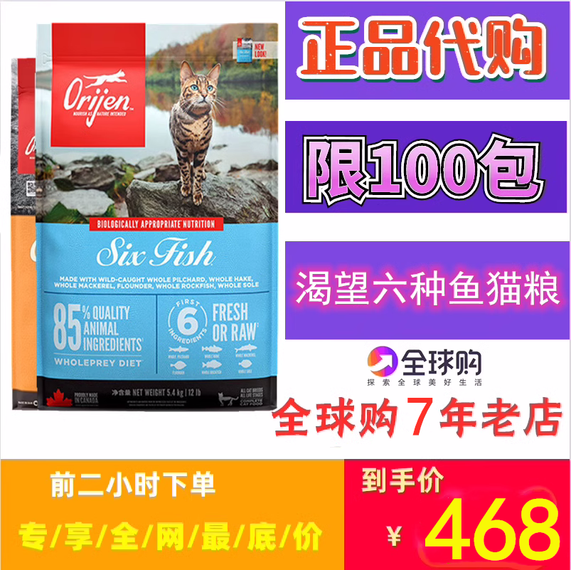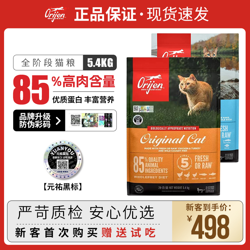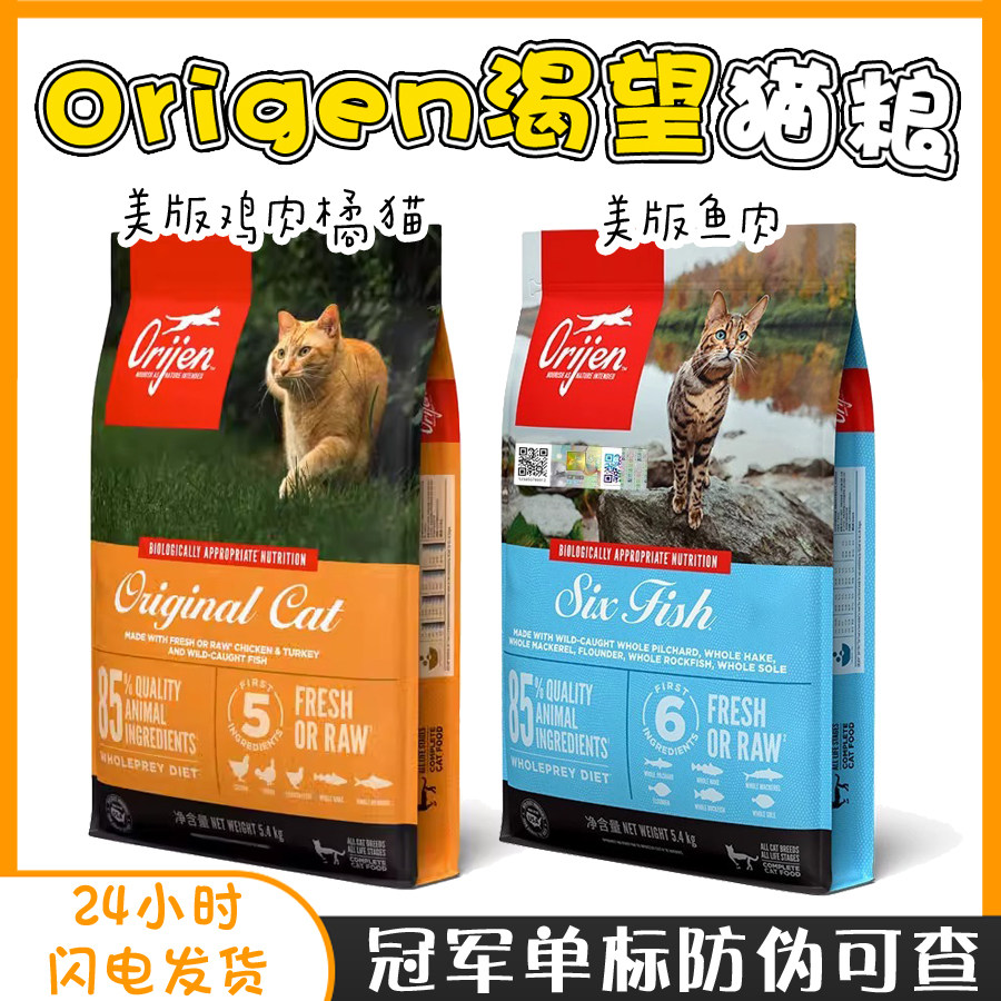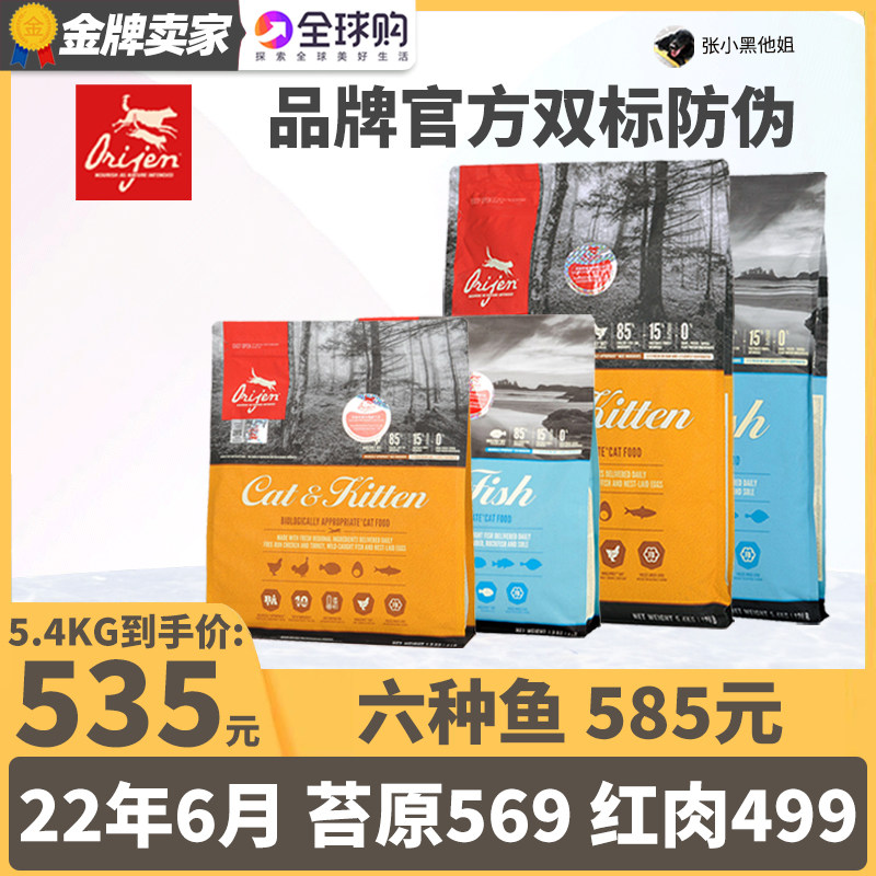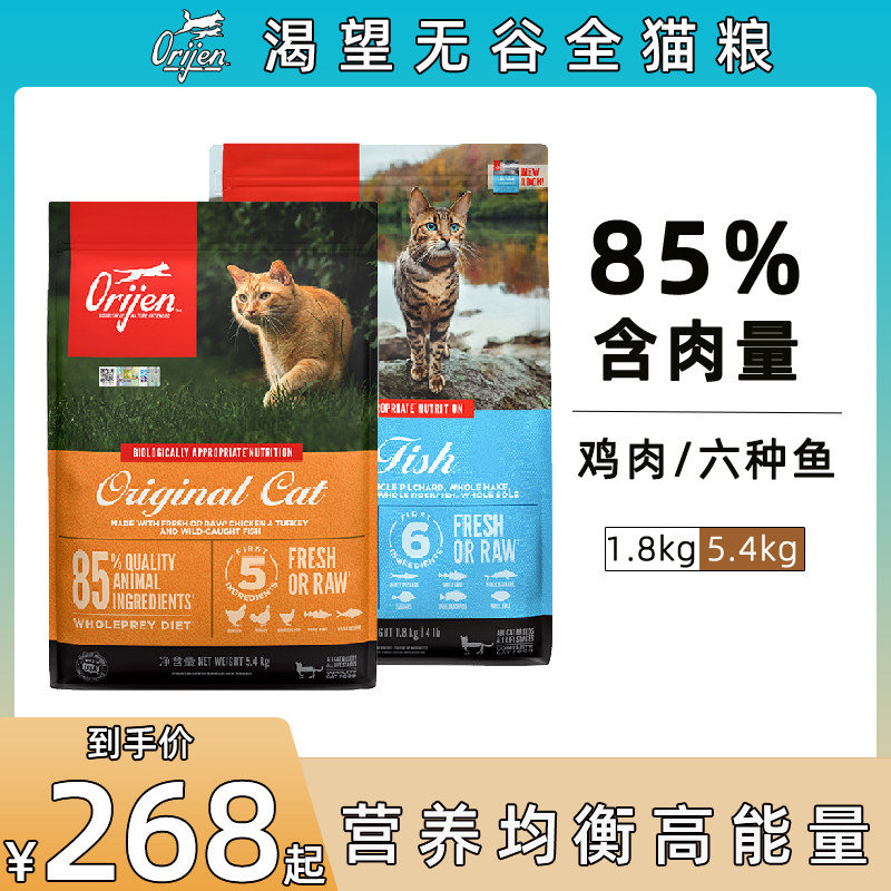 Orijen渴望猫粮无谷鸡肉六种鱼肉成猫幼猫增肥发腮全价主粮5.4kg