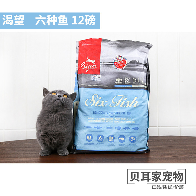 腐败猫进口Orijen渴望六种鱼鸡肉无谷室内低卡全猫粮12磅5.4kg