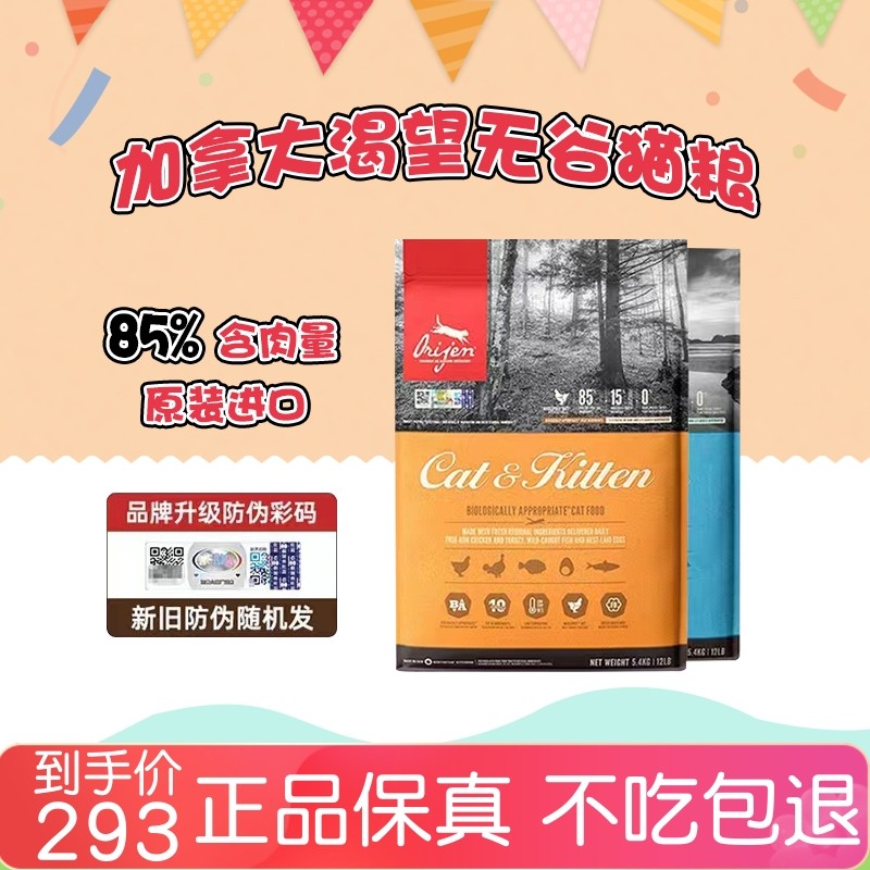 Orijen渴望加拿大进口成猫幼猫无谷鸡肉全阶段通用美版猫粮5.4kg