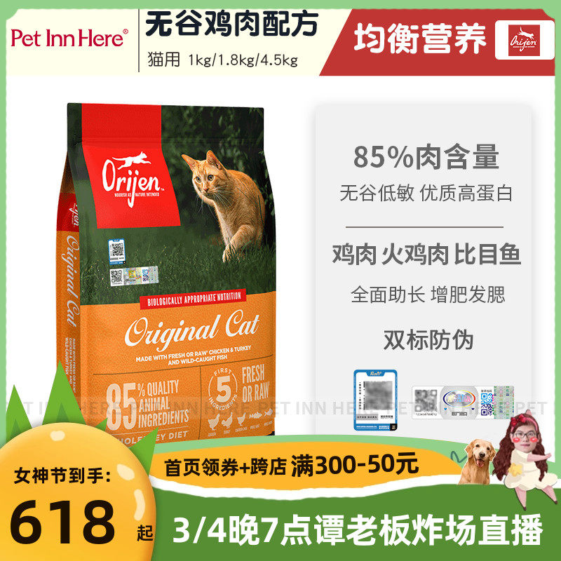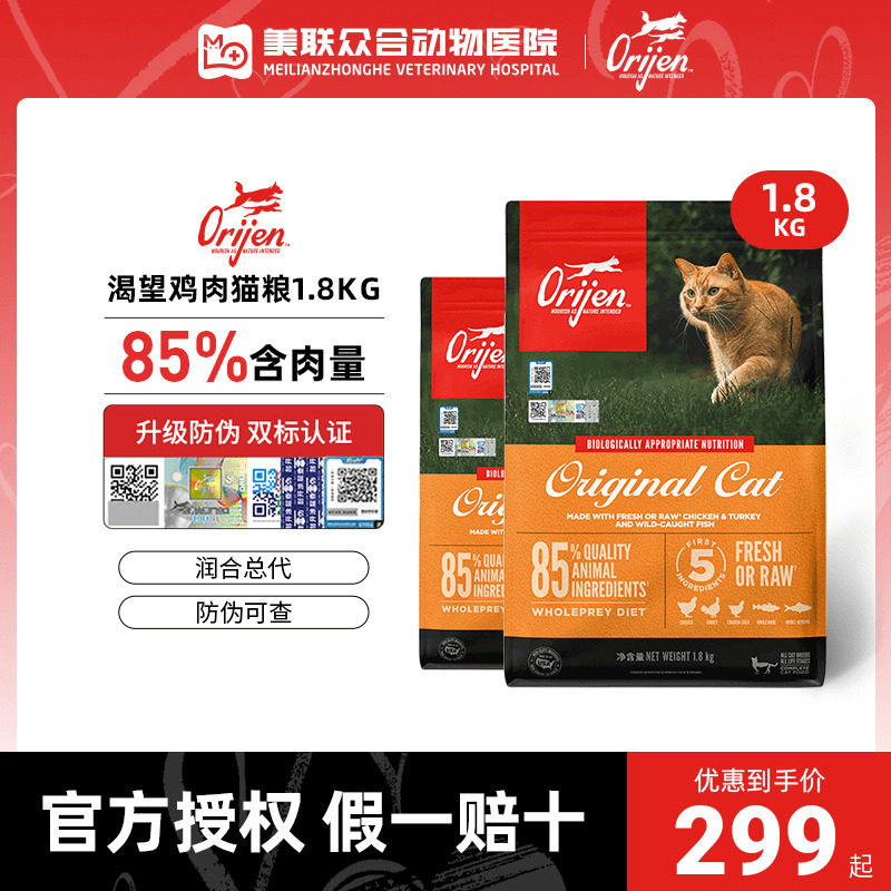 Orijen原始猎食渴望无谷通用鸡肉干粮成猫幼猫爱猫全期猫粮1.8kg