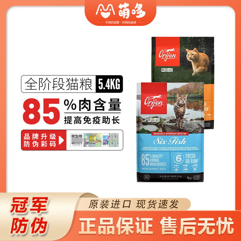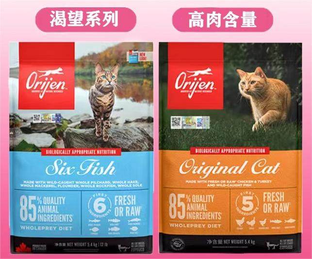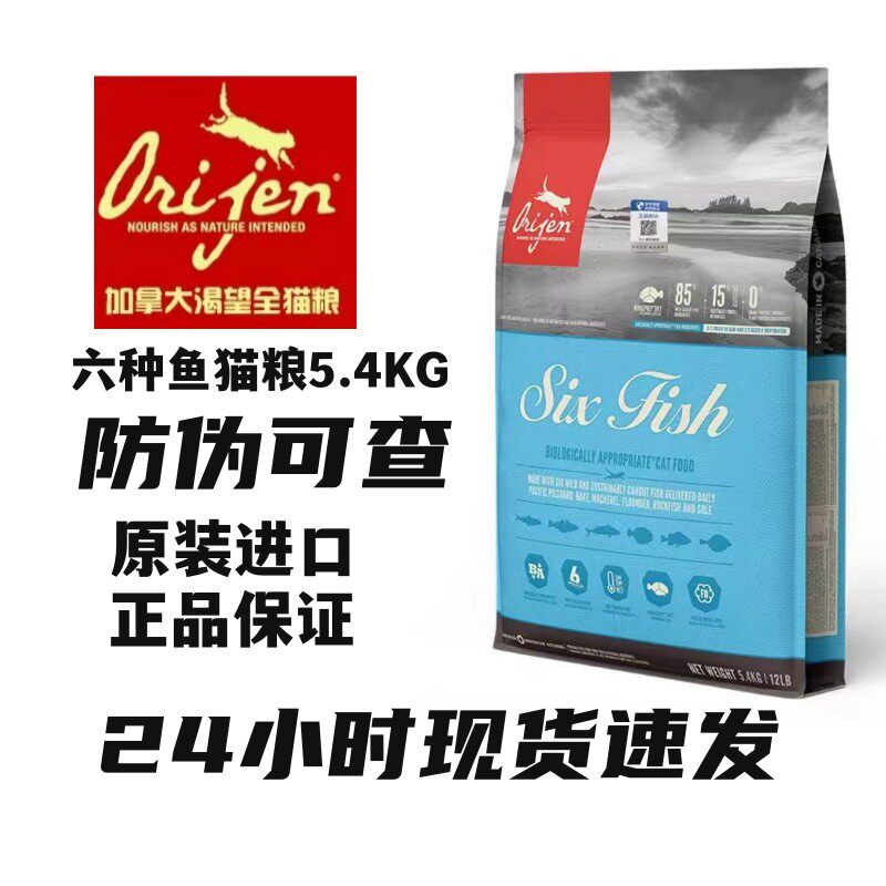 Orijen原始猎食渴望无谷成猫干粮猫粮六种鱼5.4kg部分效期24/8