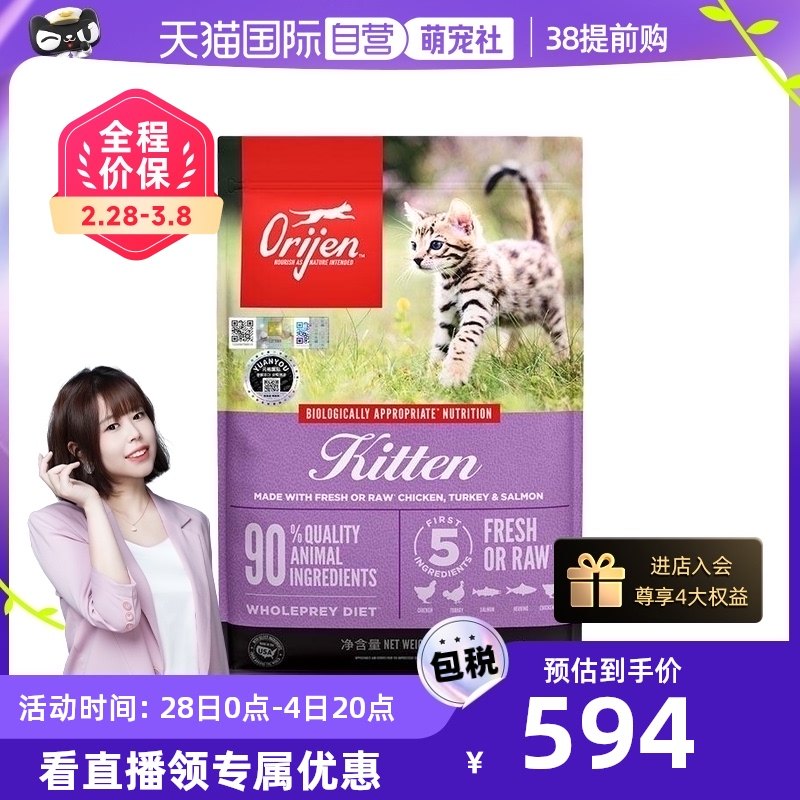 Orijen原始猎食渴望进口幼猫专用干粮幼猫鸡肉小猫猫粮5.4kg