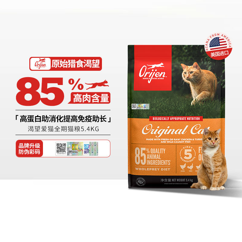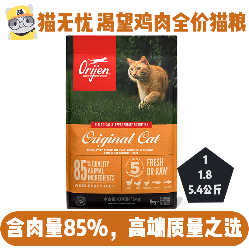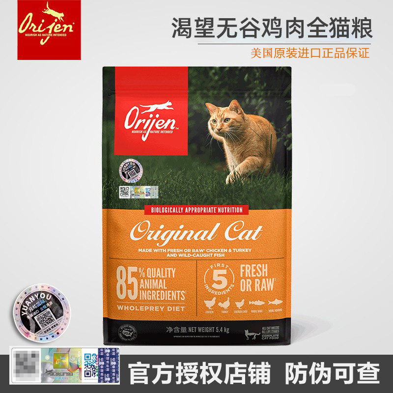 Orijen原始猎食渴望成猫幼猫通用全阶段干粮鸡肉爱猫猫粮5.4kg