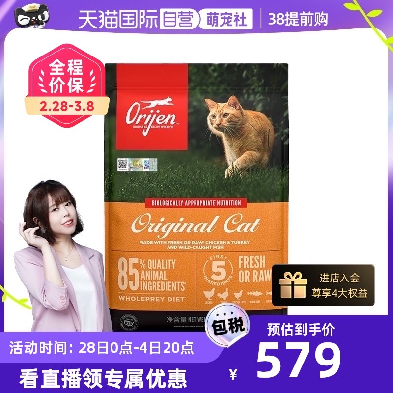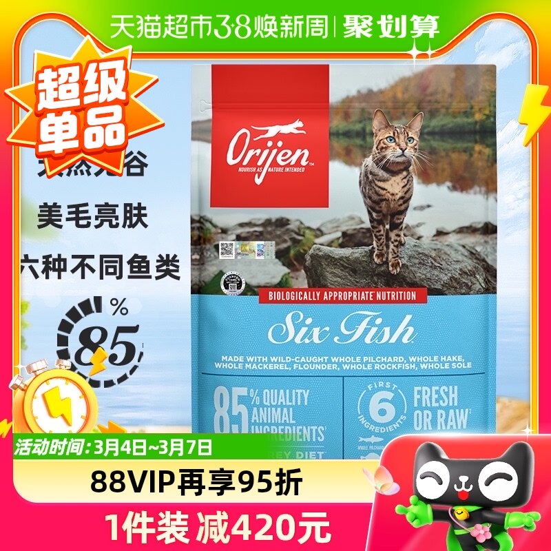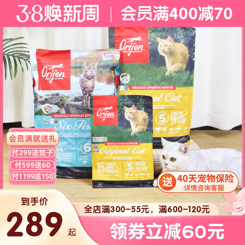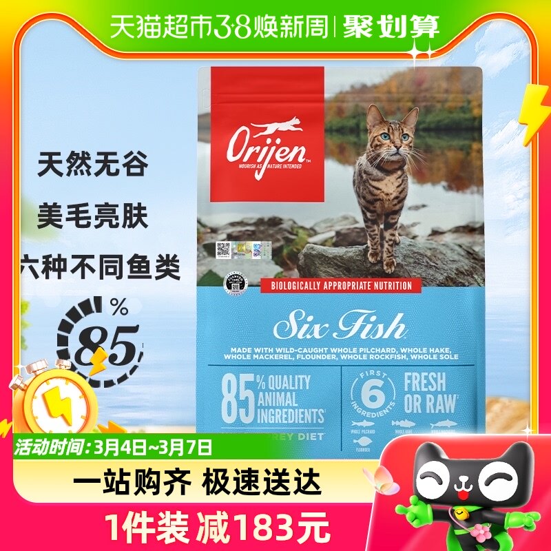 Orijen原始渴望猫粮全阶段无谷鸡肉六种鱼成幼猫通用猫主粮冠军标
