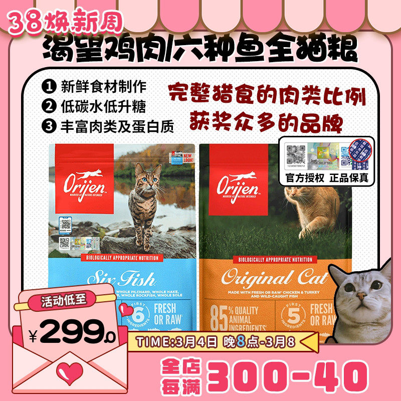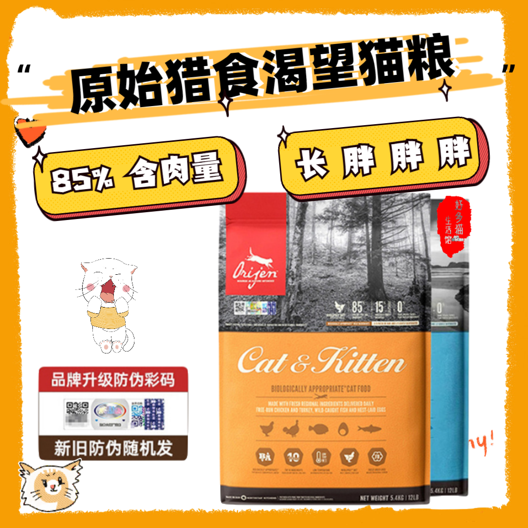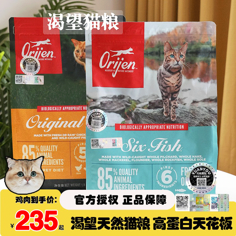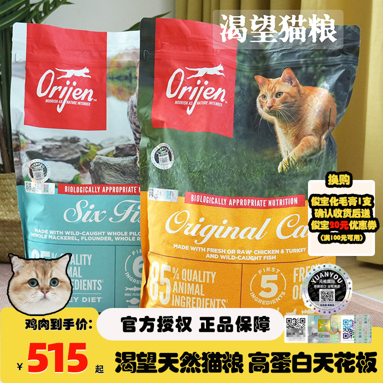 Orijen猫粮防伪包邮原始猎食 渴望鸡肉鱼肉低卡 猫粮幼猫粮成猫粮