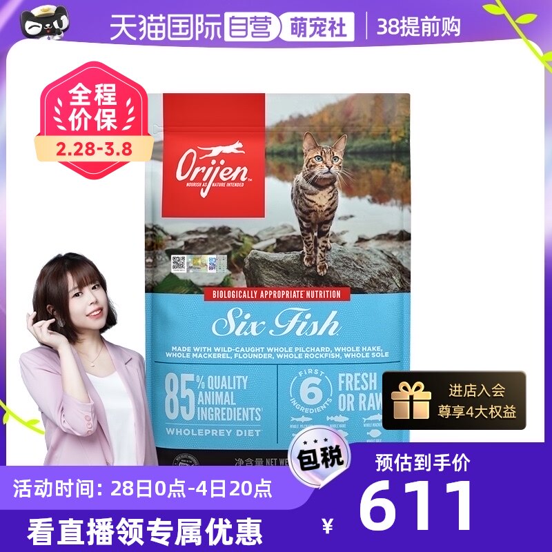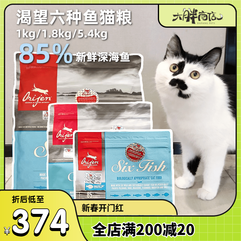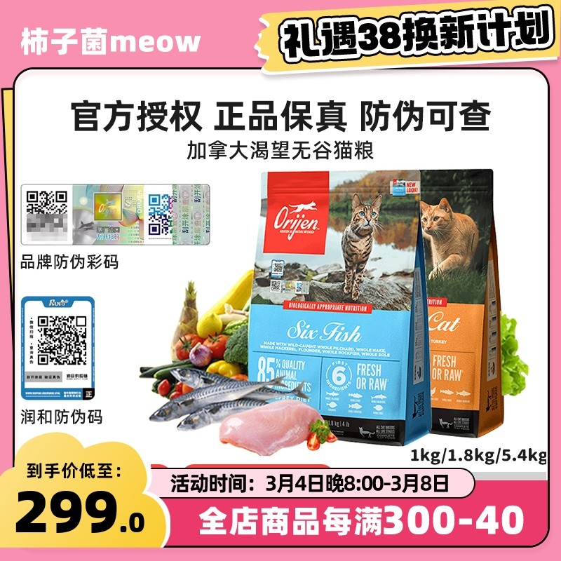 【旺财】加拿大渴望Orijen进口无谷鸡肉六种鱼成幼猫粮1.8kg5.4kg