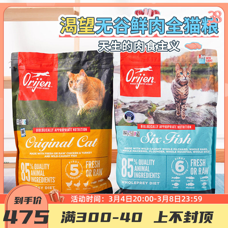 美版】Orijen渴望猫粮六种鱼美国进口无谷鸡肉成猫幼猫全阶段加版
