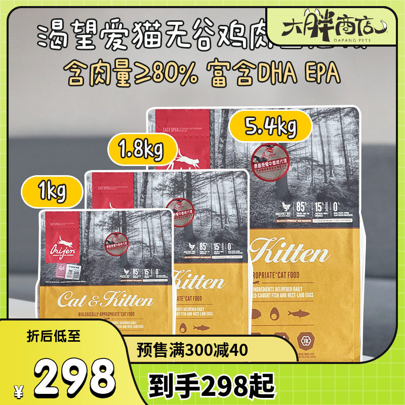 yiyi宠物 渴望猫粮Orijen原始渴望进口无谷成幼猫全价鸡肉六种鱼