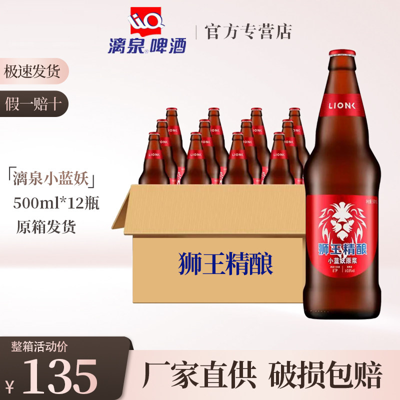 漓泉啤酒小蓝妖原浆8度玻璃瓶500ml*6瓶特价广西桂林黄啤酒吧包邮