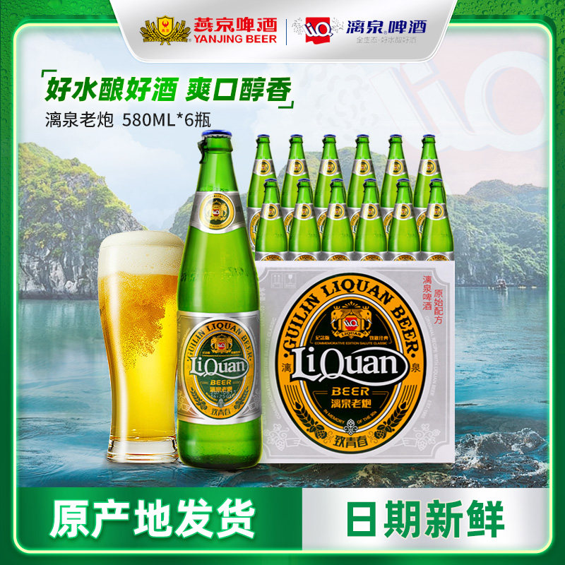 桂林漓泉老炮啤酒580ml玻璃瓶装半箱/整箱黄啤鲜啤酒广西离泉特产