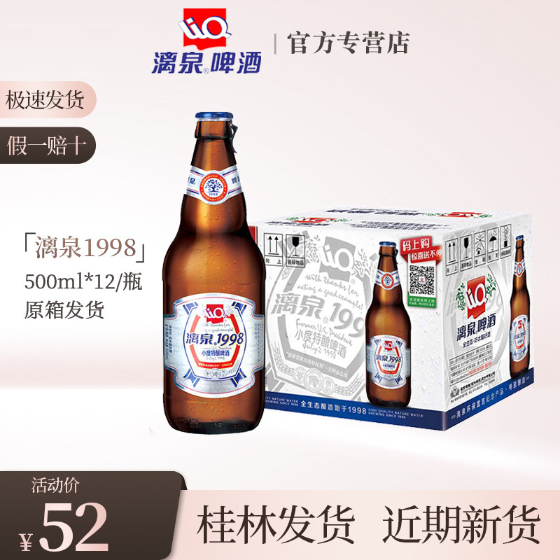 全生态漓泉啤酒1998 整箱广西500ml*12 桂林鲜啤酒小瓶装 8度瓶装
