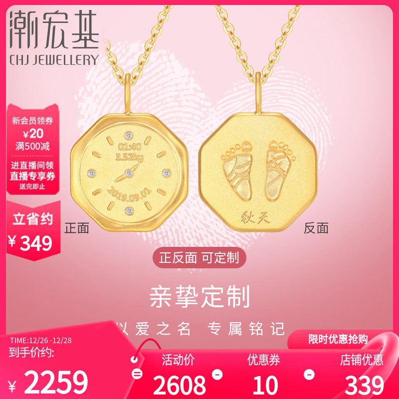 潮宏基亲挚定制钻石怀表手脚印黄18K金吊坠挂坠不含项链宝宝