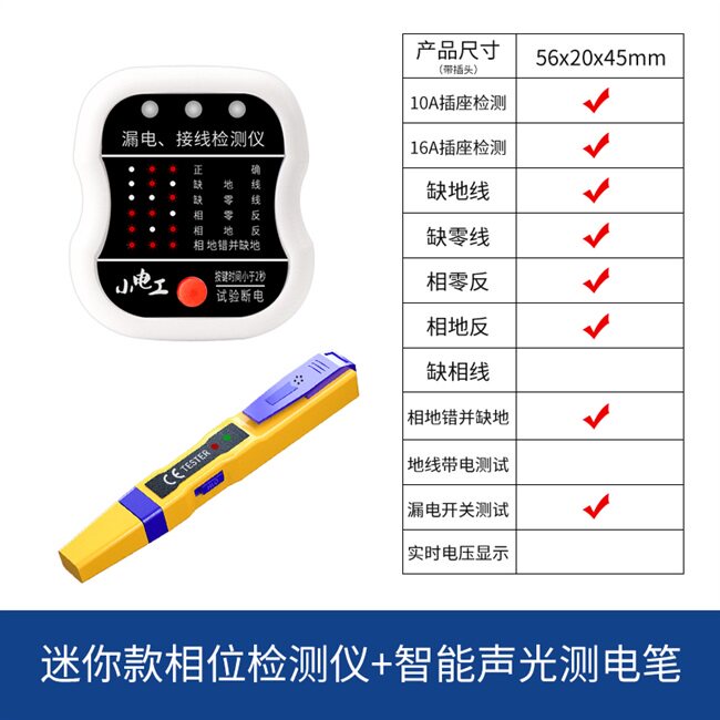 相位检测仪插座测试电源极性测电器验电器漏电测试仪地线试电插头
