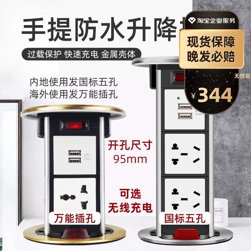 升降插座嵌入式厨房中岛岛台台面排插隐藏式桌洞伸缩防水带开关