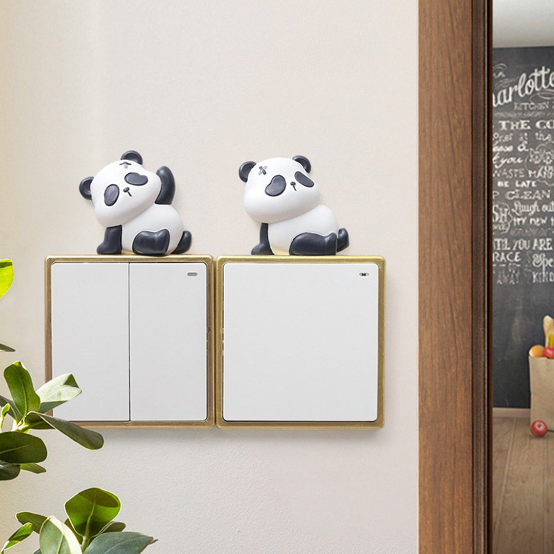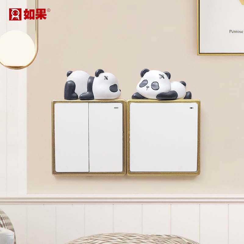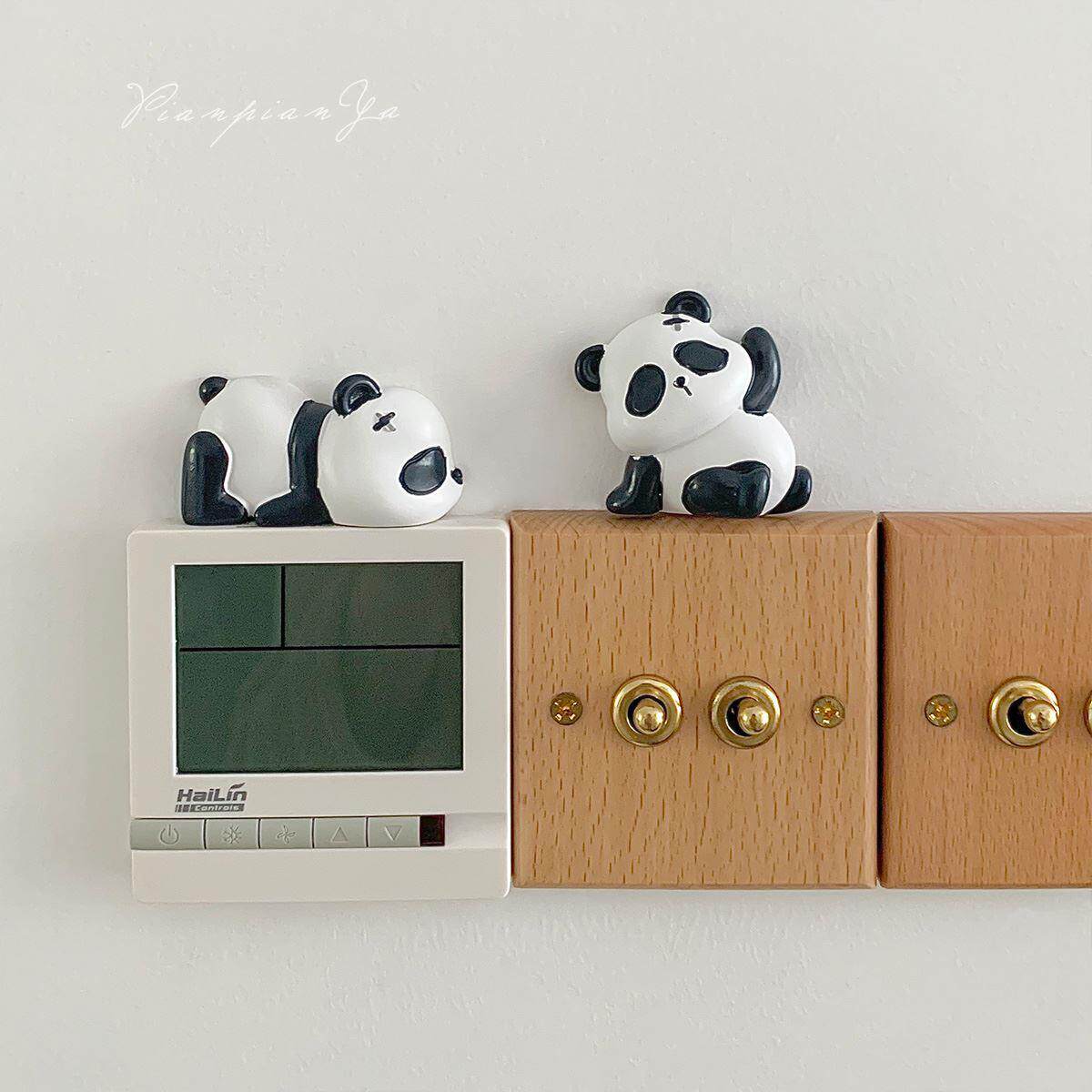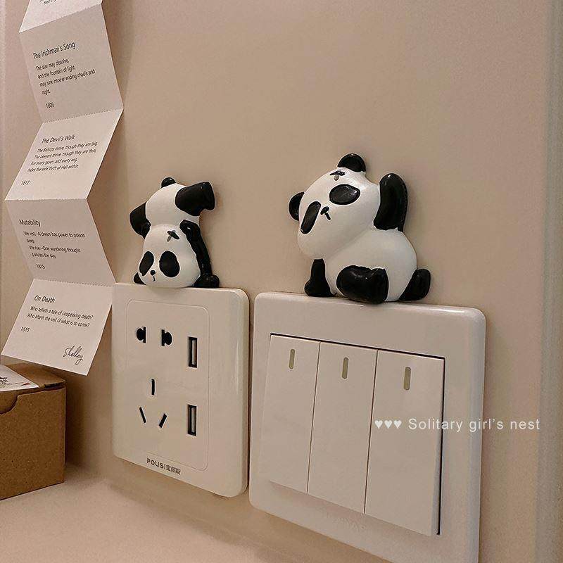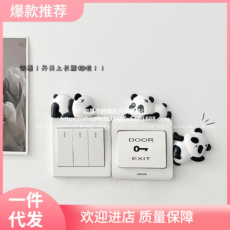 Panda来啦~可爱淘气熊猫插座半立体开关贴创意北欧风家居墙面装饰