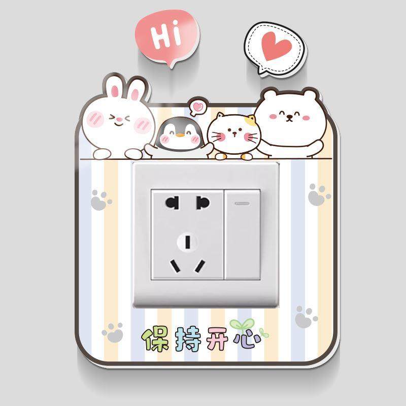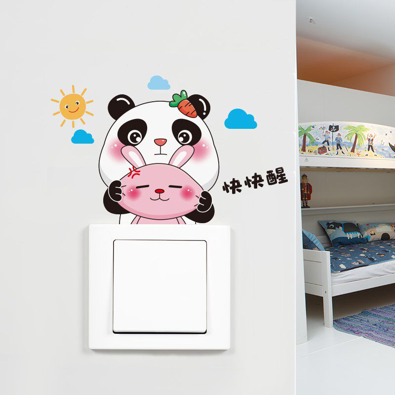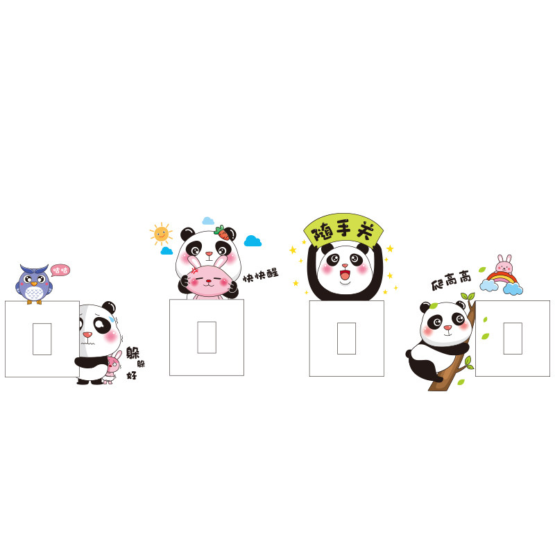 卡通熊猫贴画标识开关贴装饰墙贴保护套卧室客厅墙壁插座贴纸家用