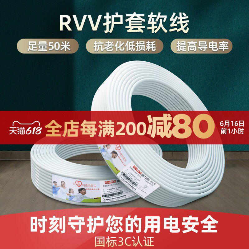 德力西RVV电线软线家用电缆线2芯3芯1.52.54平方电缆线护套线