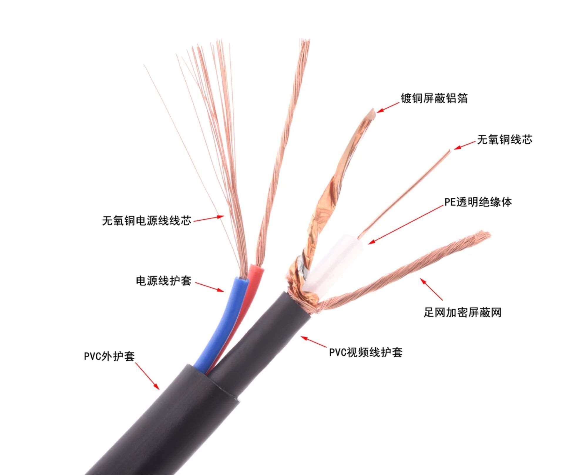 纯铜高清监控线带电源一体线75-5模拟监控视频综合线同轴电缆75-3