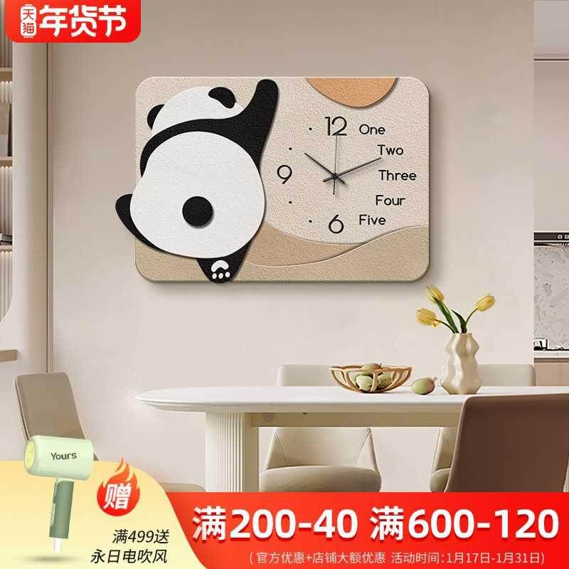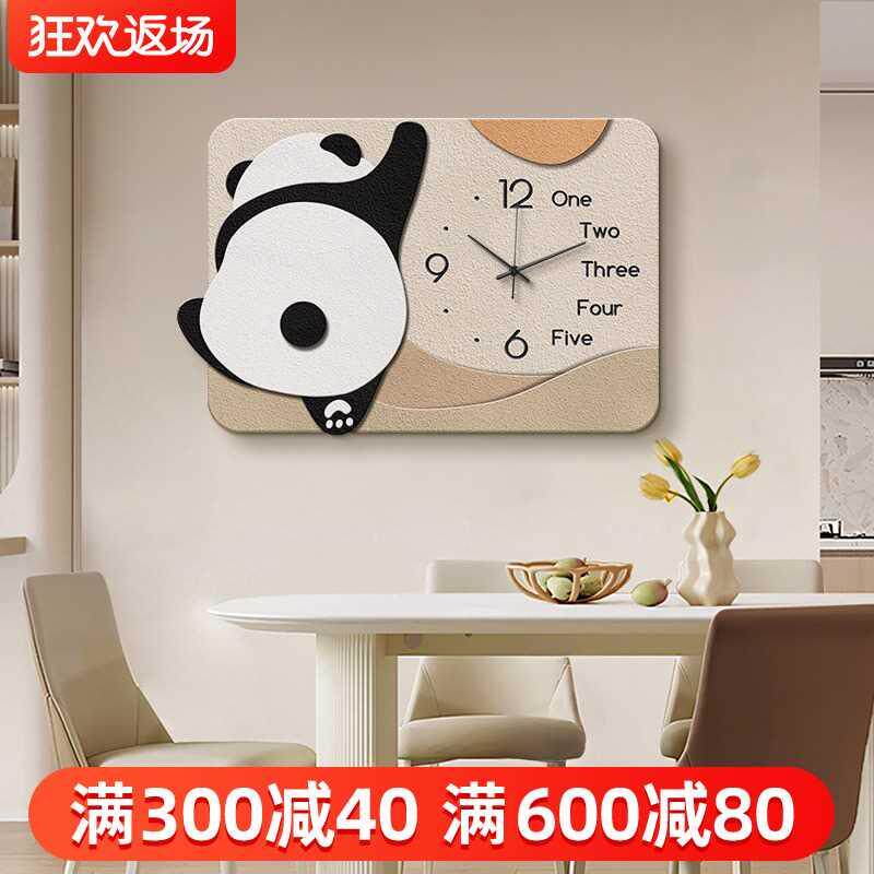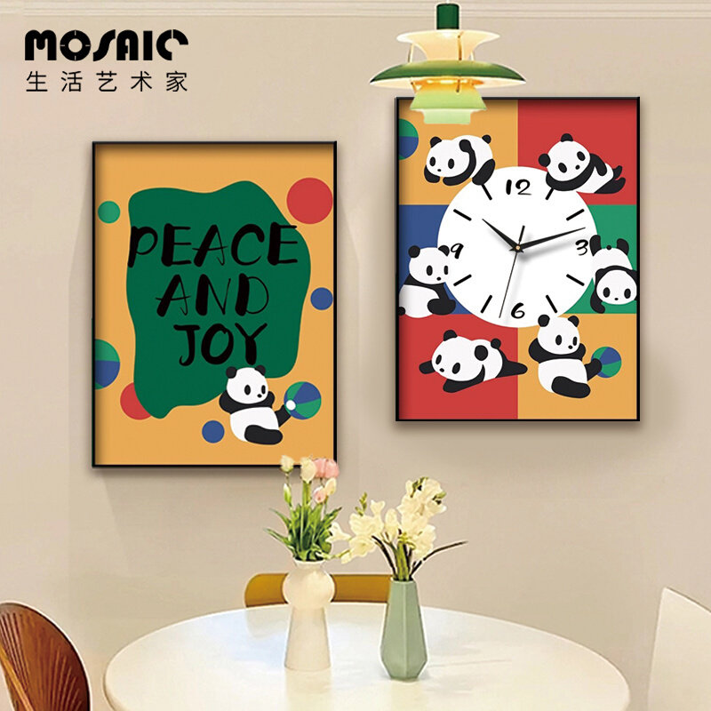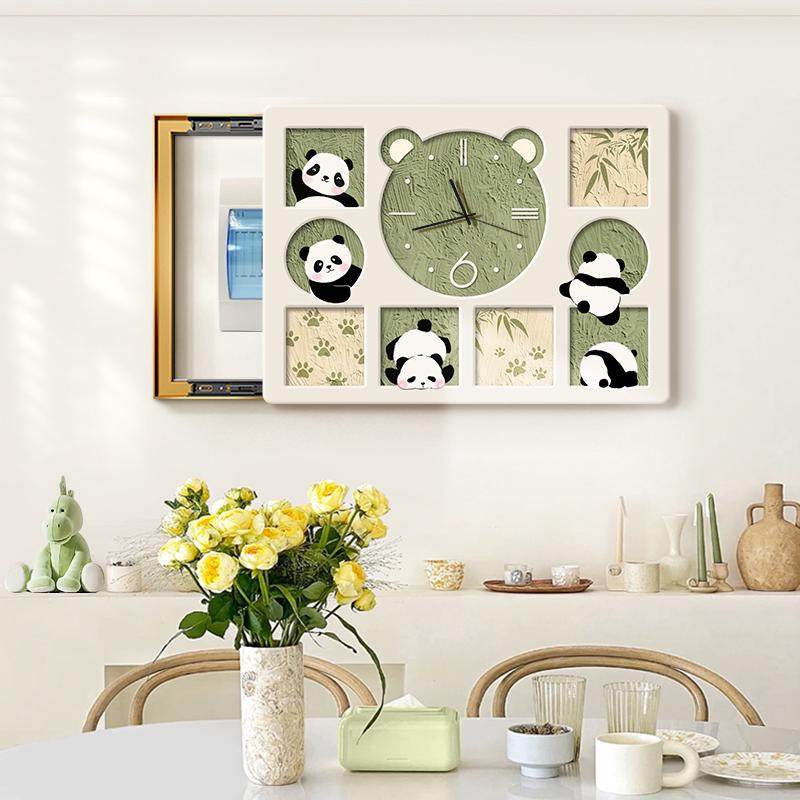 奶油风卡通电表箱装饰画熊猫童趣客餐厅可遮挡电表箱时钟画钟表