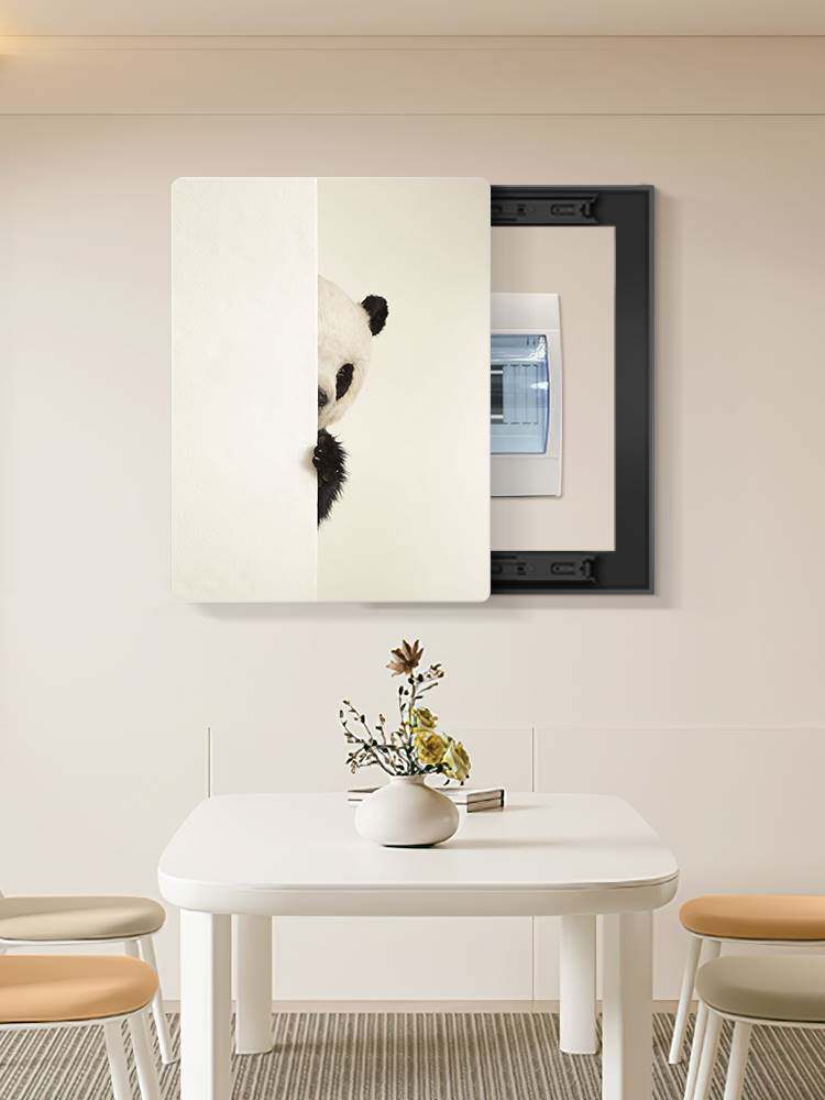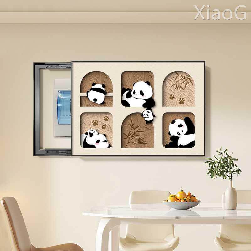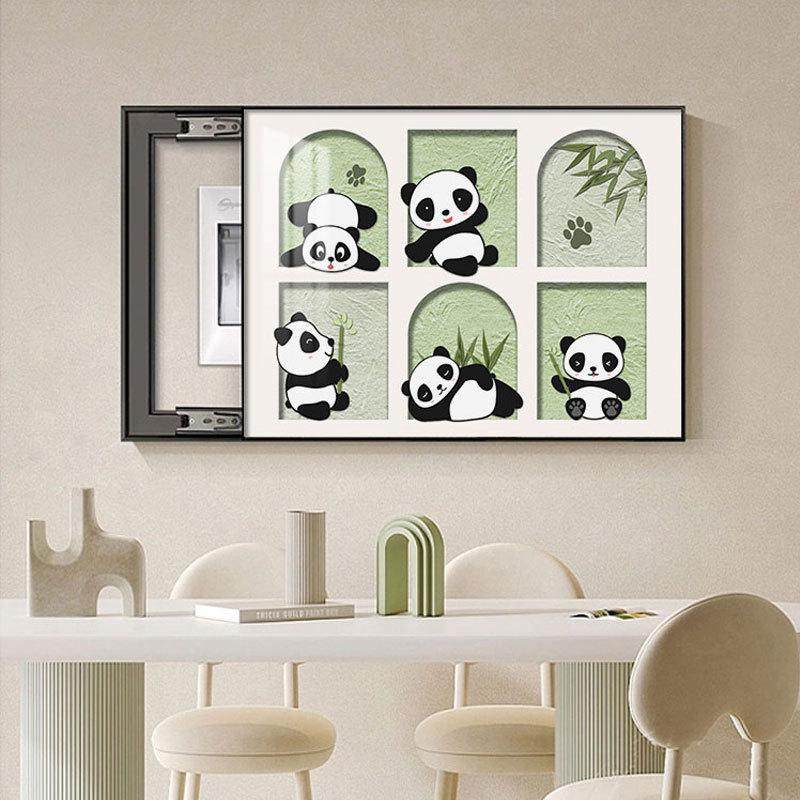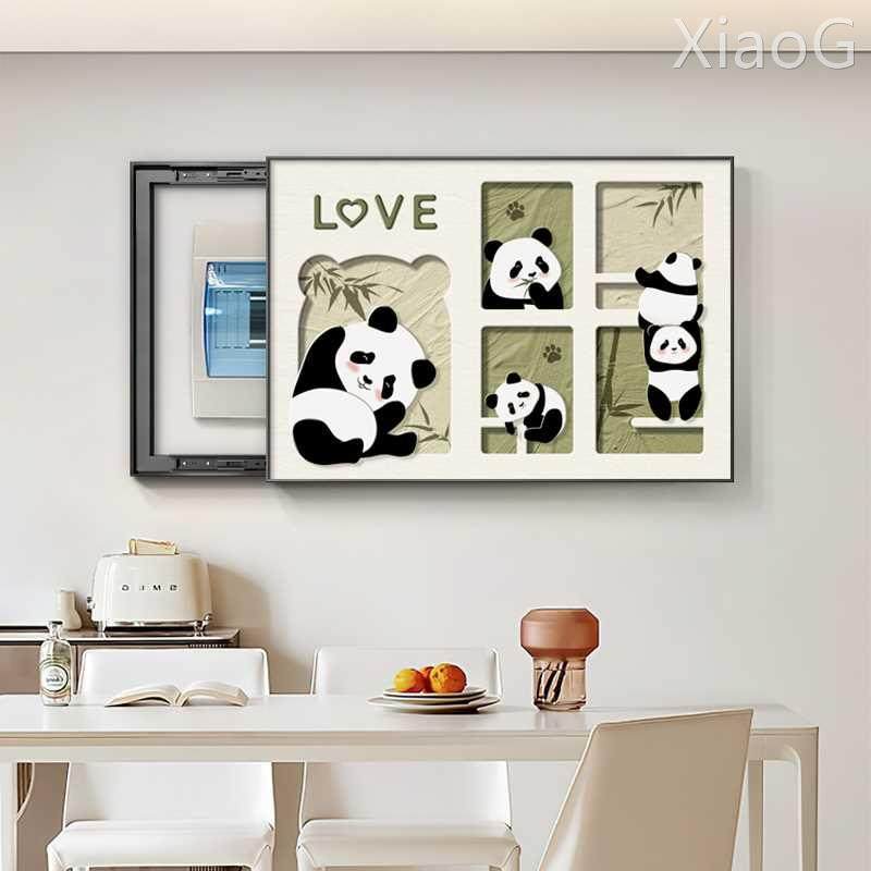 奶油风电表箱装饰画熊猫配电箱遮挡画现代简约餐厅开关盒挂画动漫