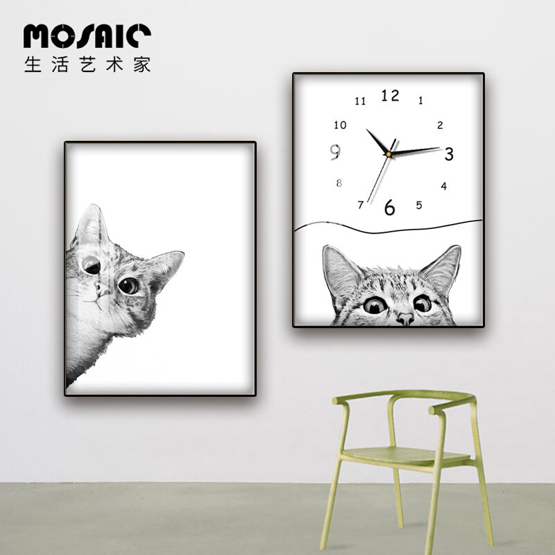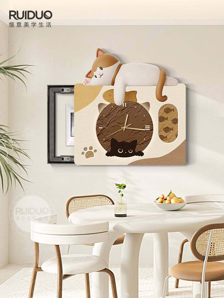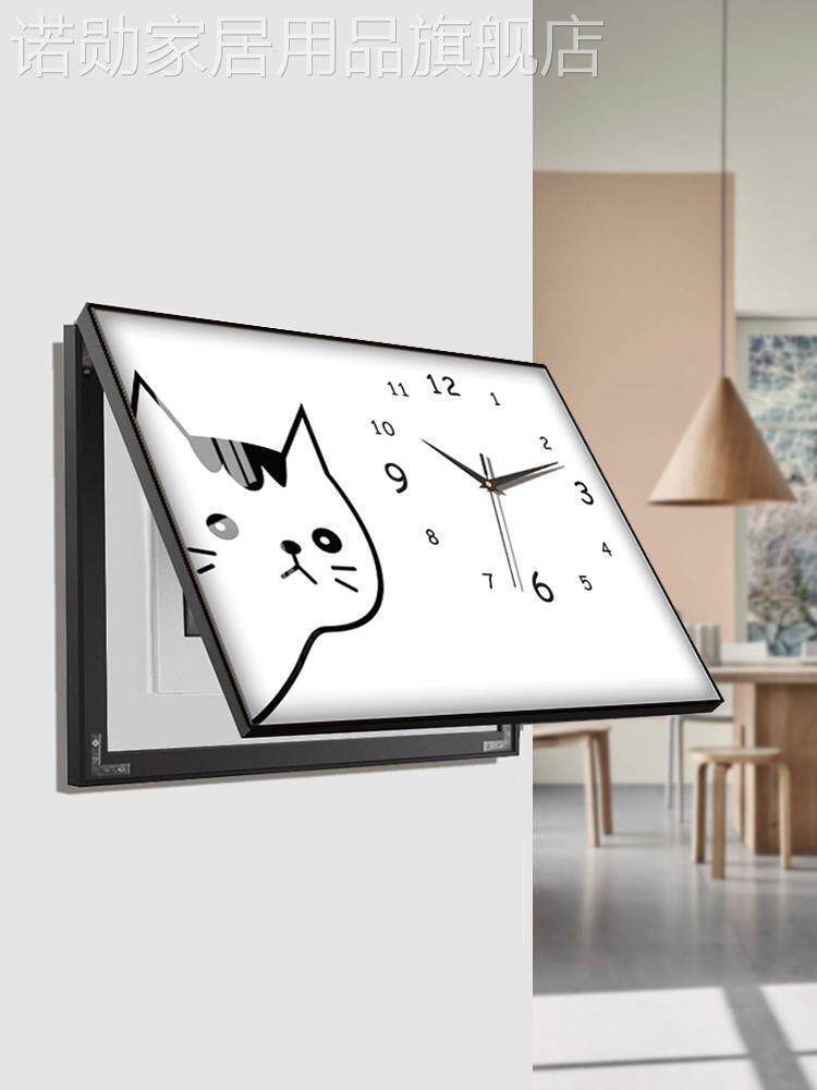 客厅电表箱装饰画可推拉钟表带钟表墙面北欧挂画液压杆创意贴纸免