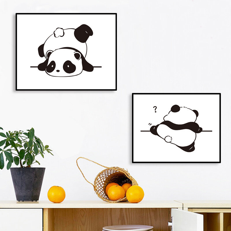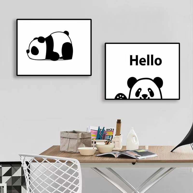 黑白熊猫电表箱装饰画现代简约遮挡电闸开关箱配电箱多媒体箱挂画