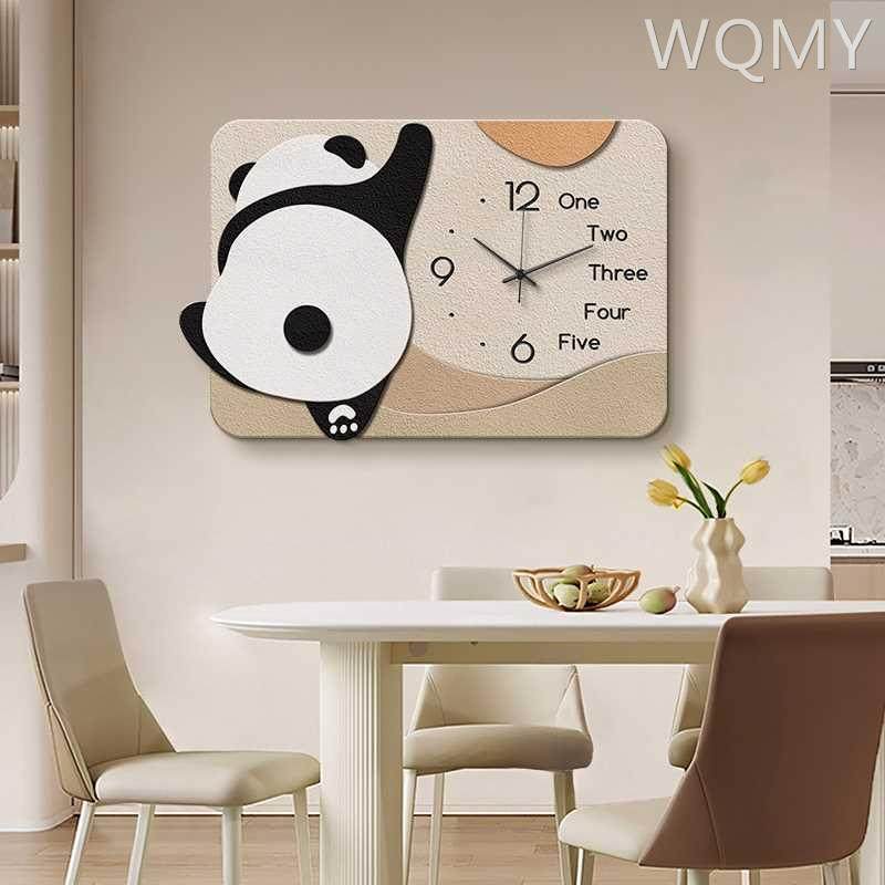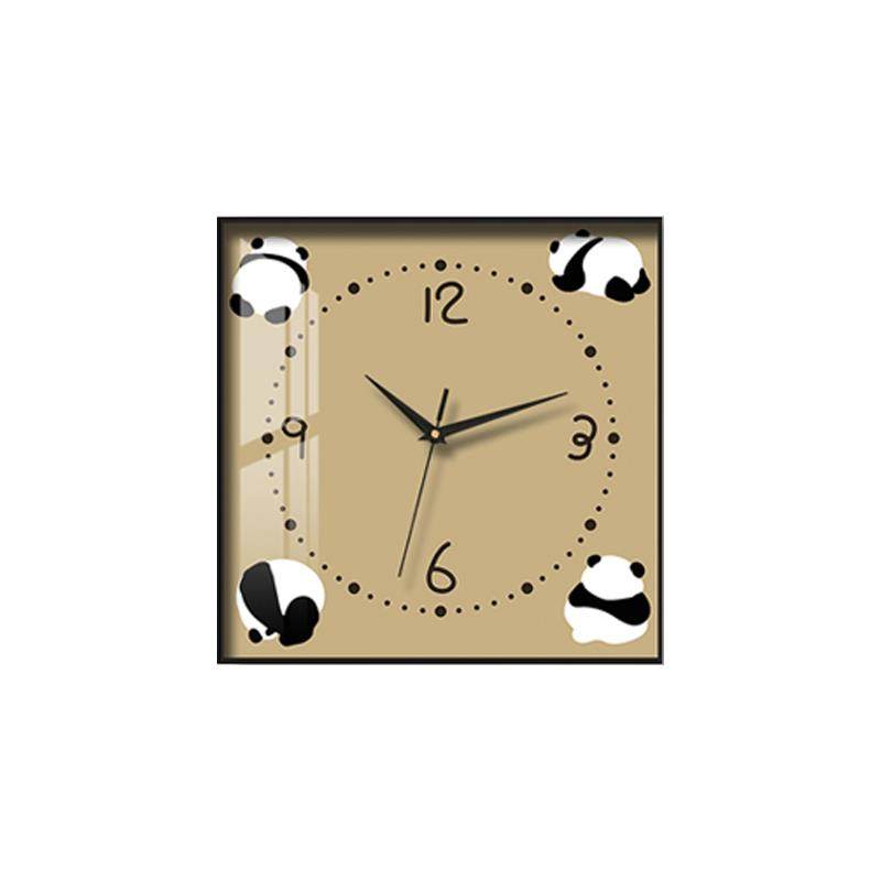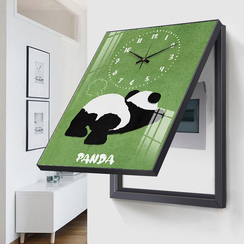 新款简约卡通小熊猫电表箱挂钟装饰画电闸盒子总开关遮挡时钟表