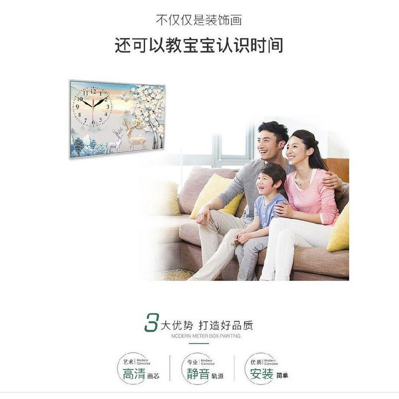 现代简约客厅餐厅表装饰画免打孔电表箱挂画创意钟表卧室壁画挂钟