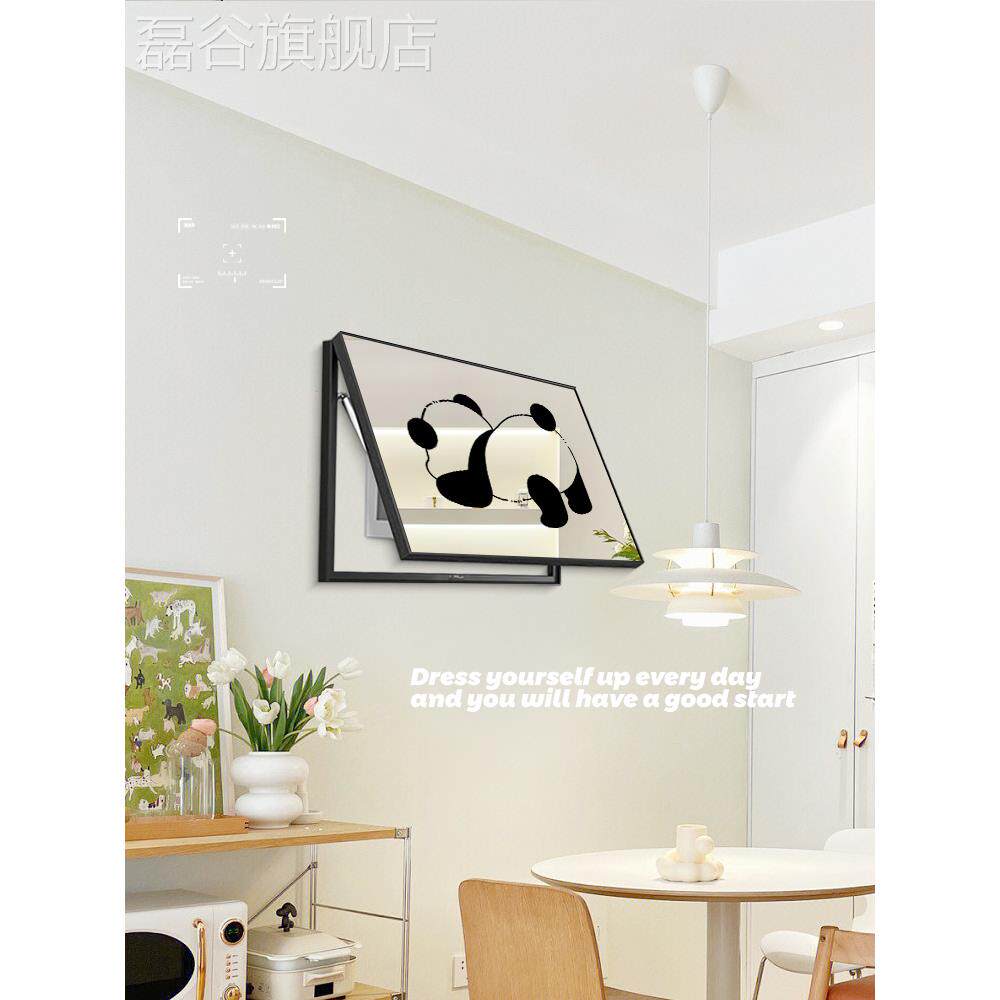 网红张小画熊猫电表电箱镜子装饰画走廊客遮丑厅挂画餐厅箱遮挡壁