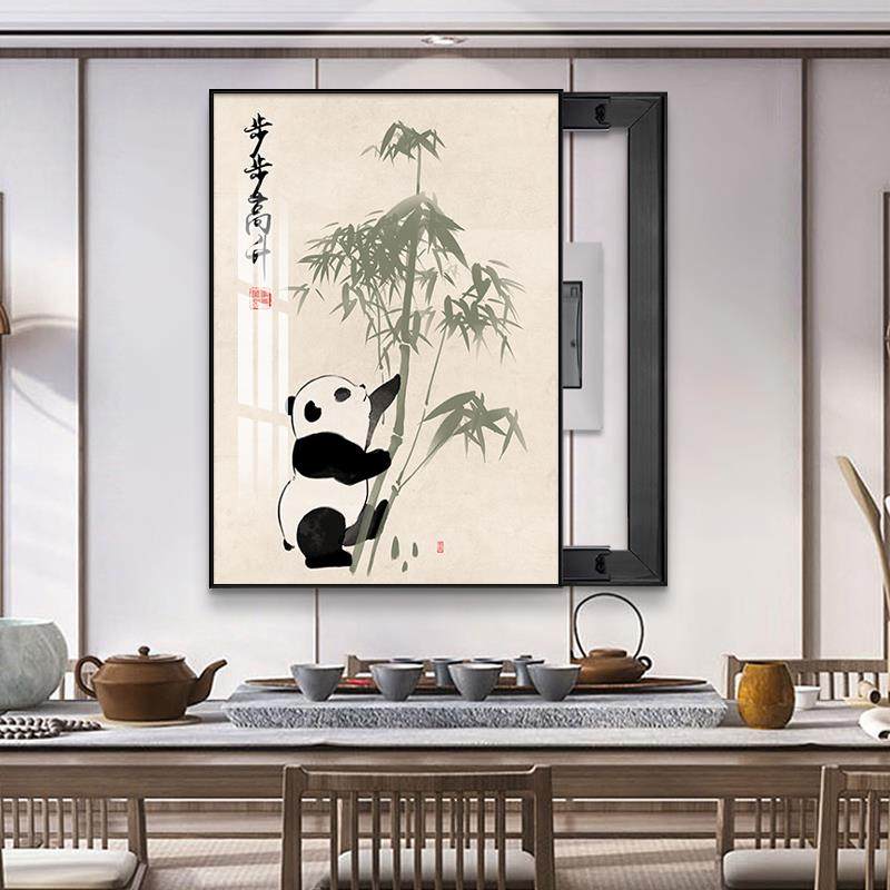 电表箱装饰画竖版免打孔新中式餐厅遮挡电闸箱挂画客厅熊猫竹子画
