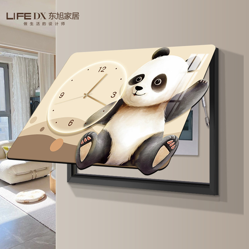电表箱装饰画带钟表熊猫配电箱遮挡挂画电闸盒开关餐厅时钟壁画
