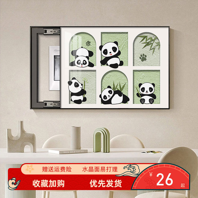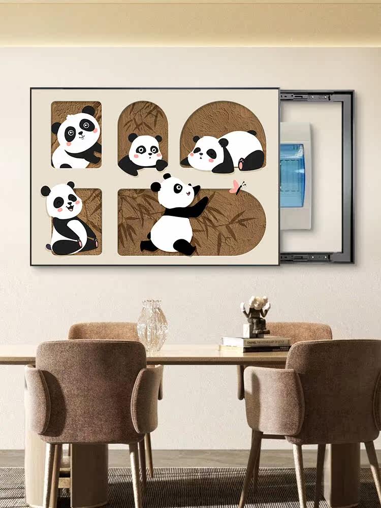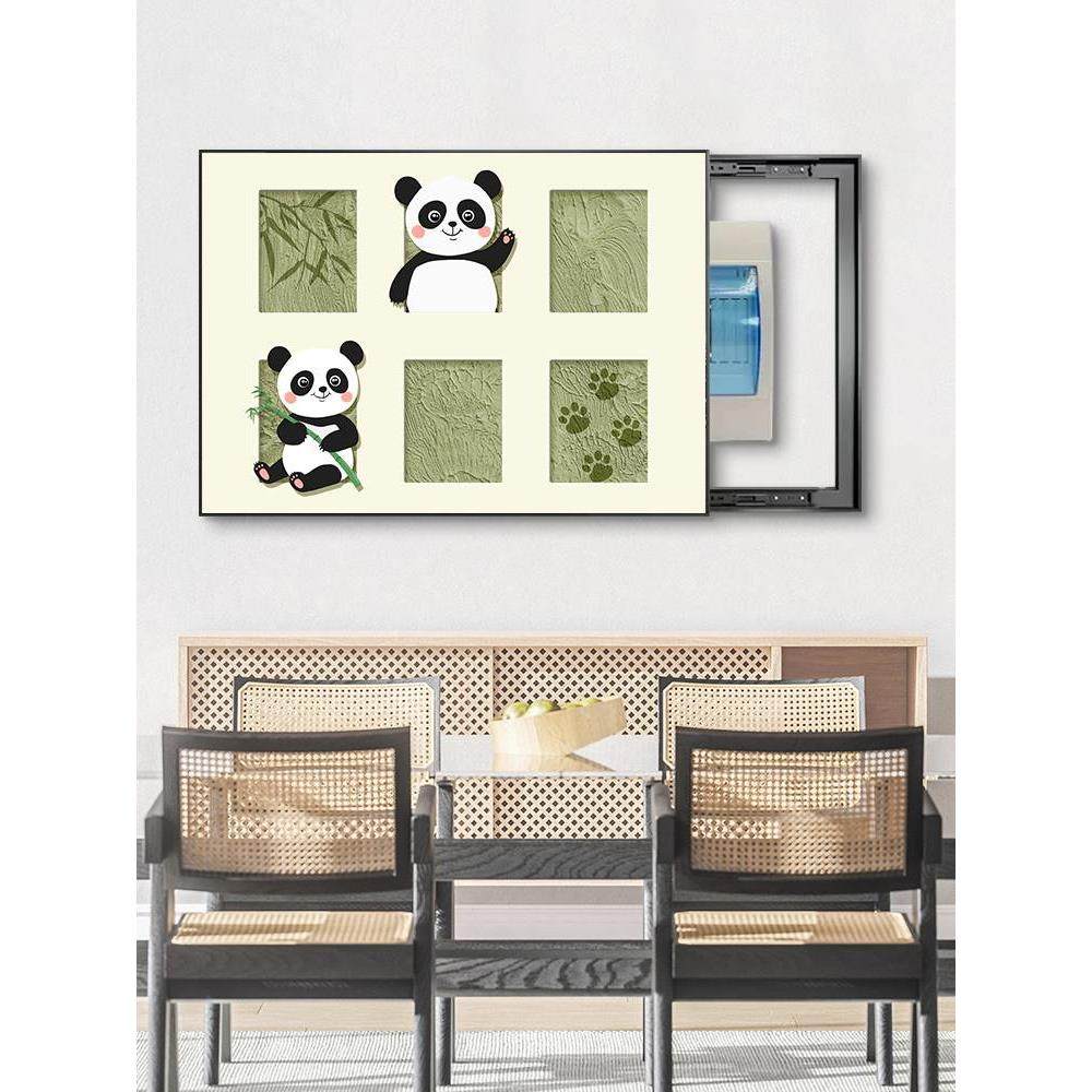 卡通熊猫电表箱装饰画客厅配电闸遮挡多媒体盒挂画电源总开关挂画