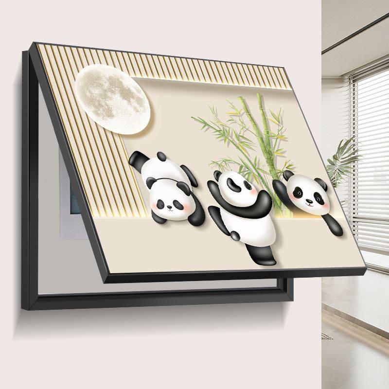 熊猫电表箱装饰画客厅电源总开关遮挡挂画多媒体箱盖板电闸箱壁画