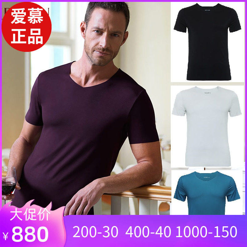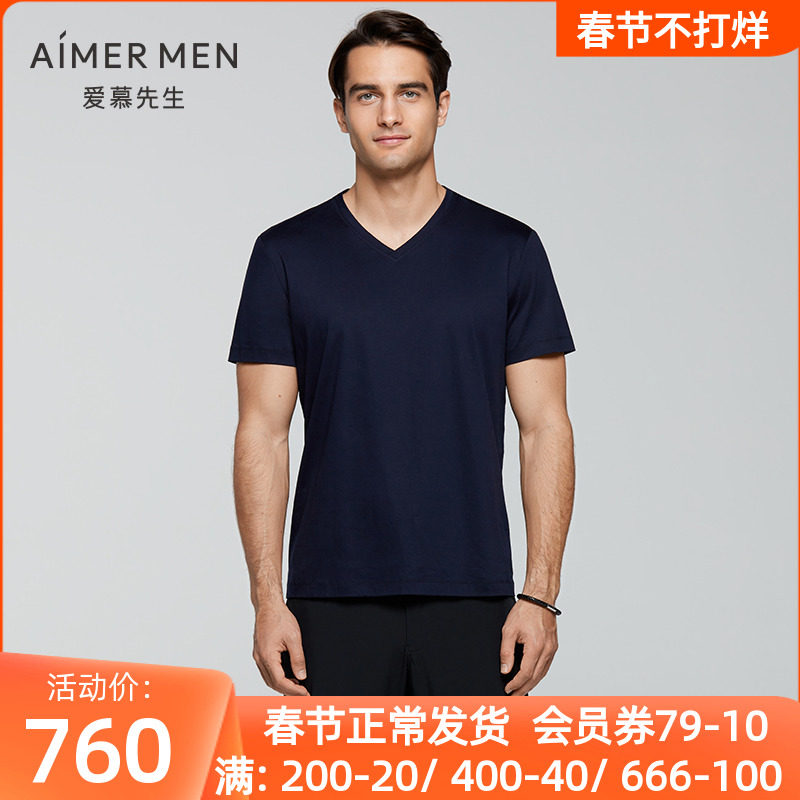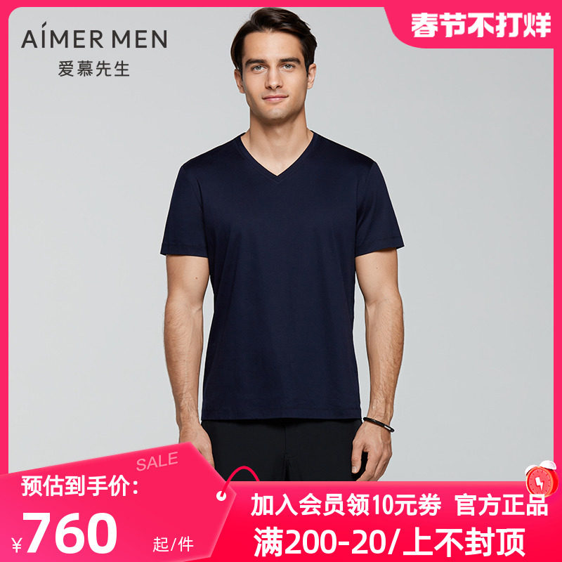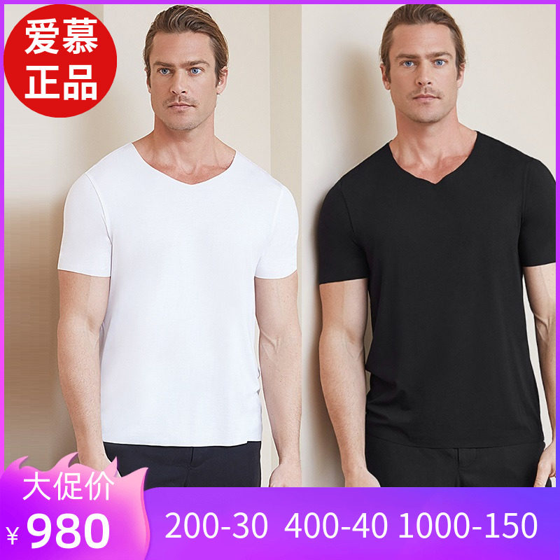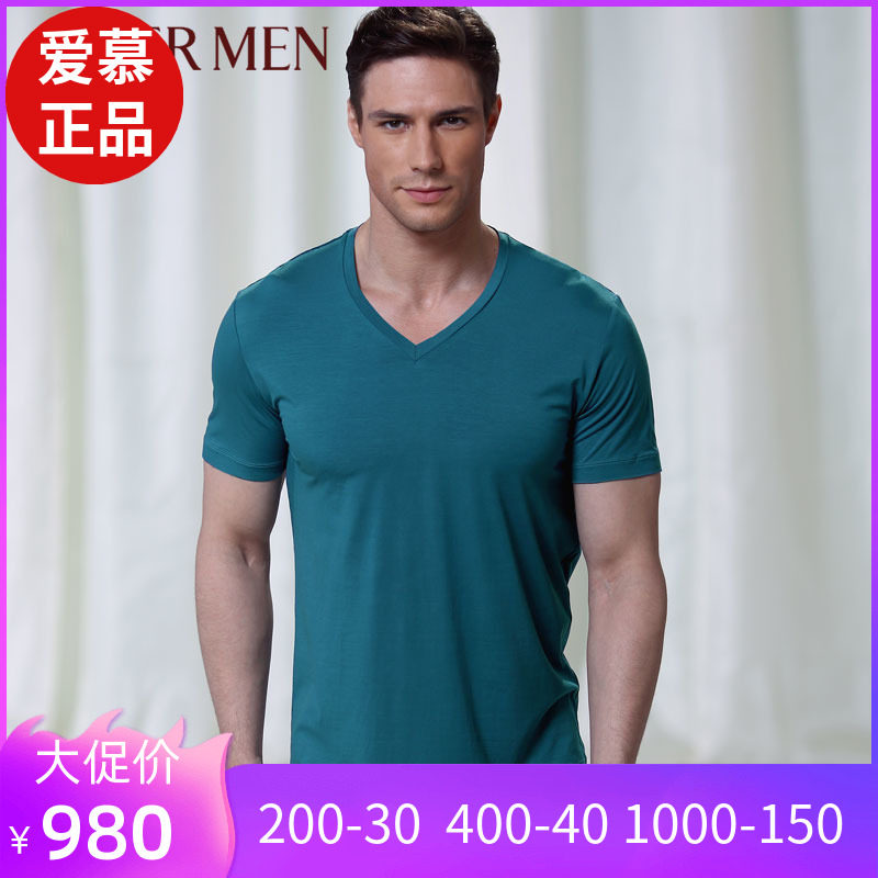 爱慕先生品牌红品莫代尔薄款柔软V领男士短袖T恤上衣12354