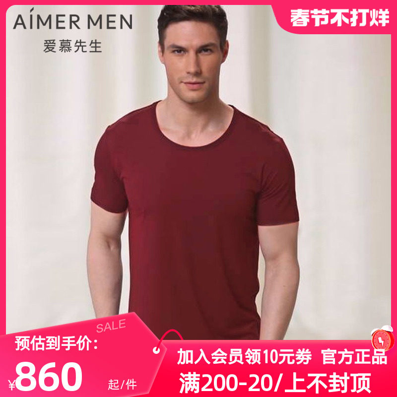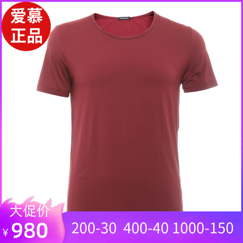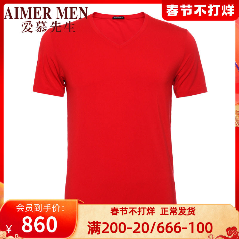 爱慕先生正品莫代尔薄款红色本命年男士短袖T恤家居上衣NS12354