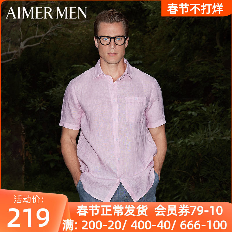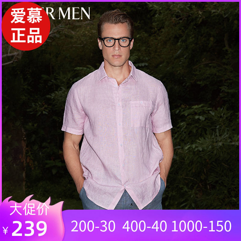 爱慕先生特价清仓男春夏秋亚麻翻领短袖上衣NS81A952