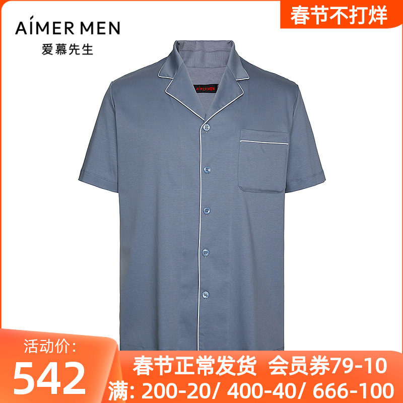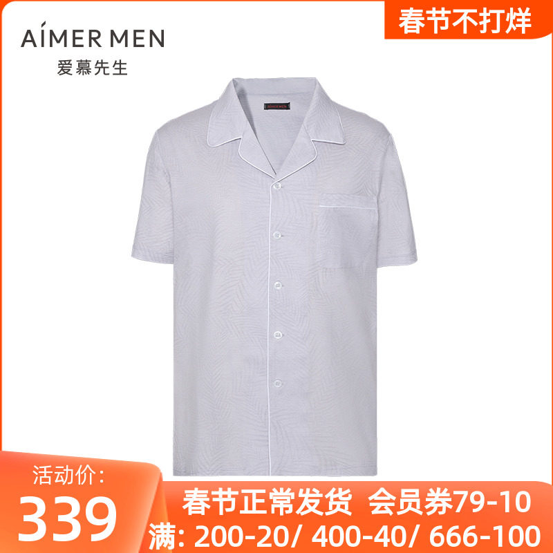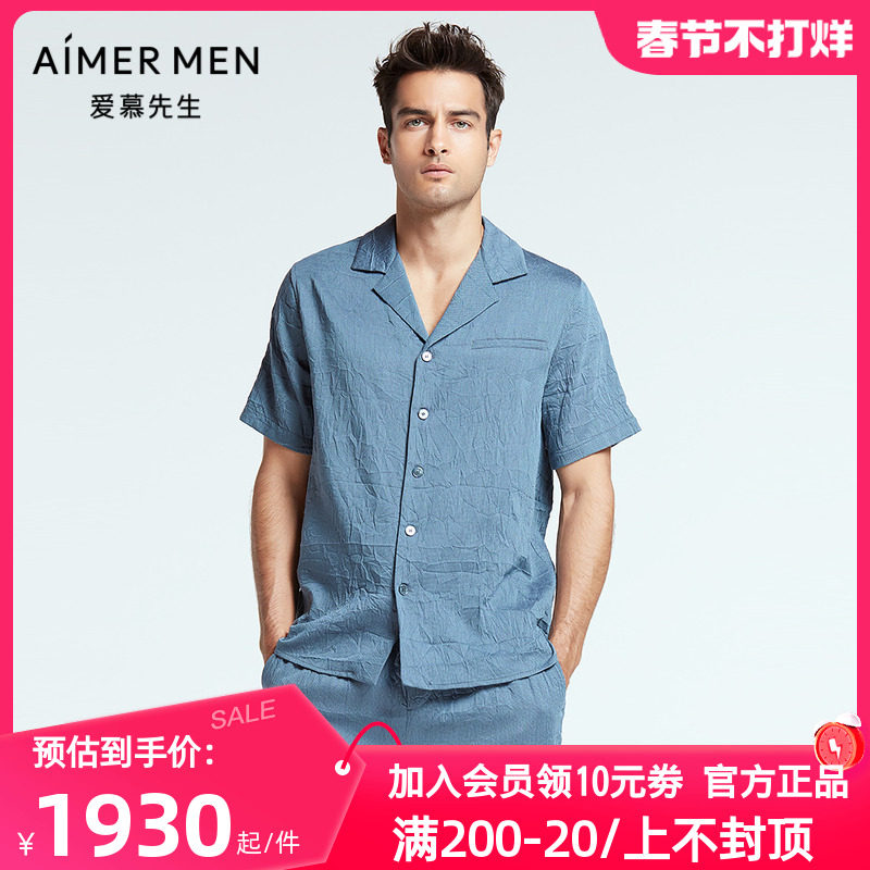 爱慕先生正品睡衣男士金标褶皱家居系列翻领开衫短袖上衣NS41F651