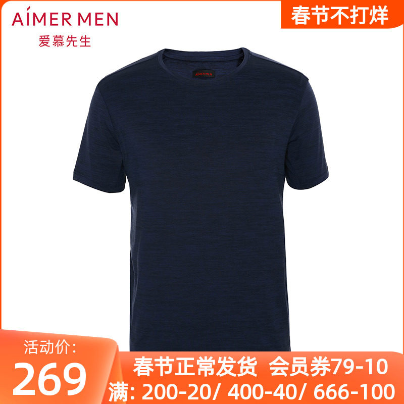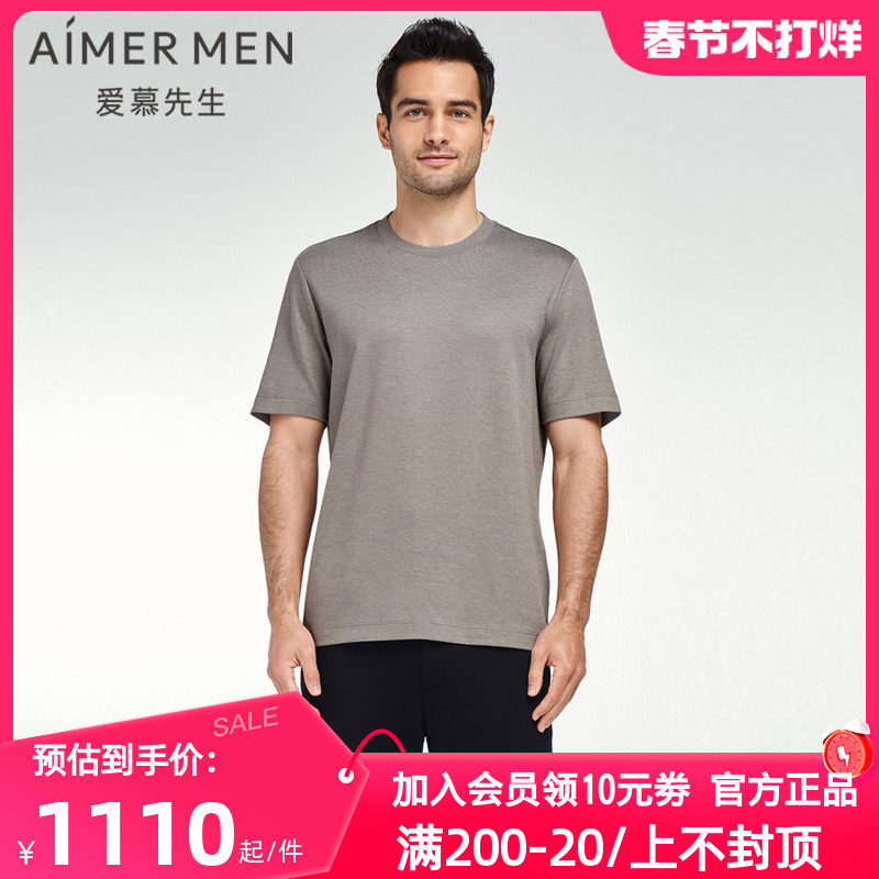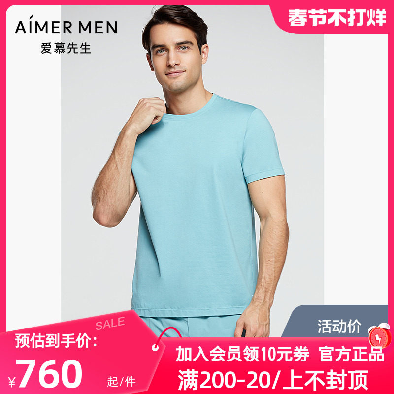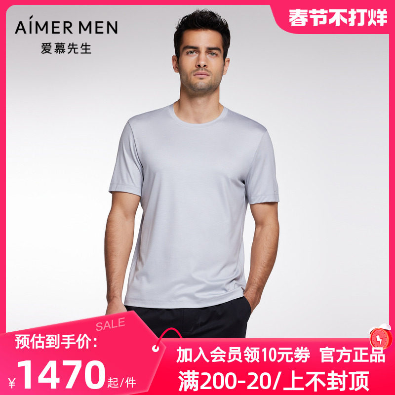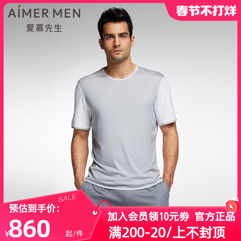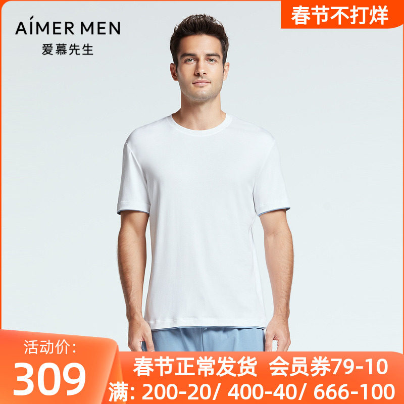 爱慕先生官方正品T恤 男士款圆领短袖棉质家居上衣NS81E501A