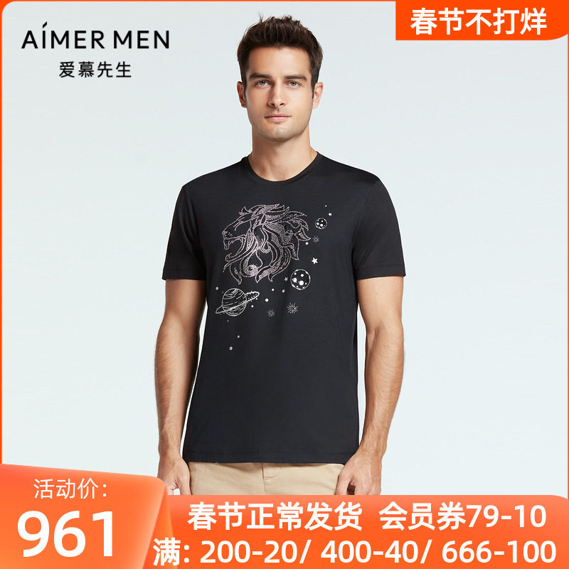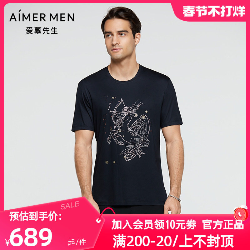爱慕先生官方正品夏季男莫代尔薄款烫钻印花圆领短袖T恤NS81E412