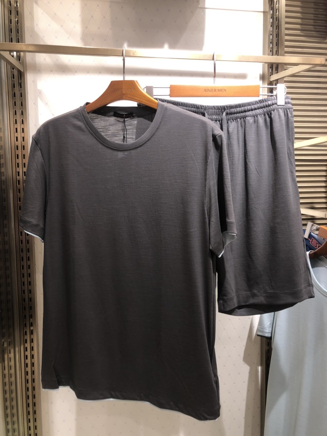 爱慕先生正品夏季男士家居服圆领短袖T恤+短裤睡衣套装NS2022005