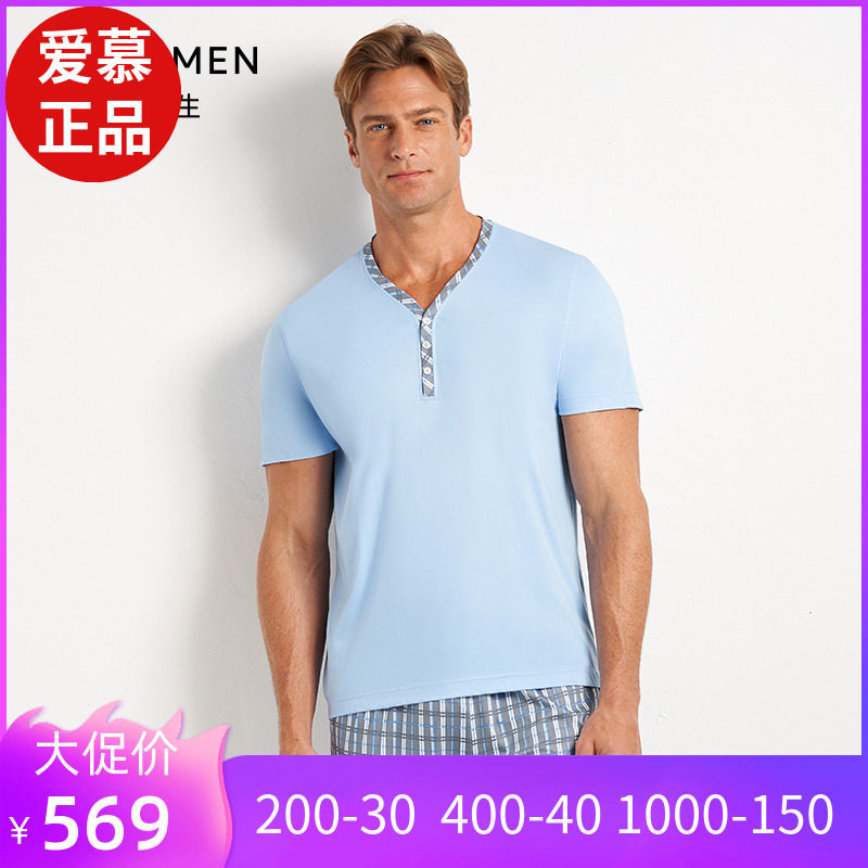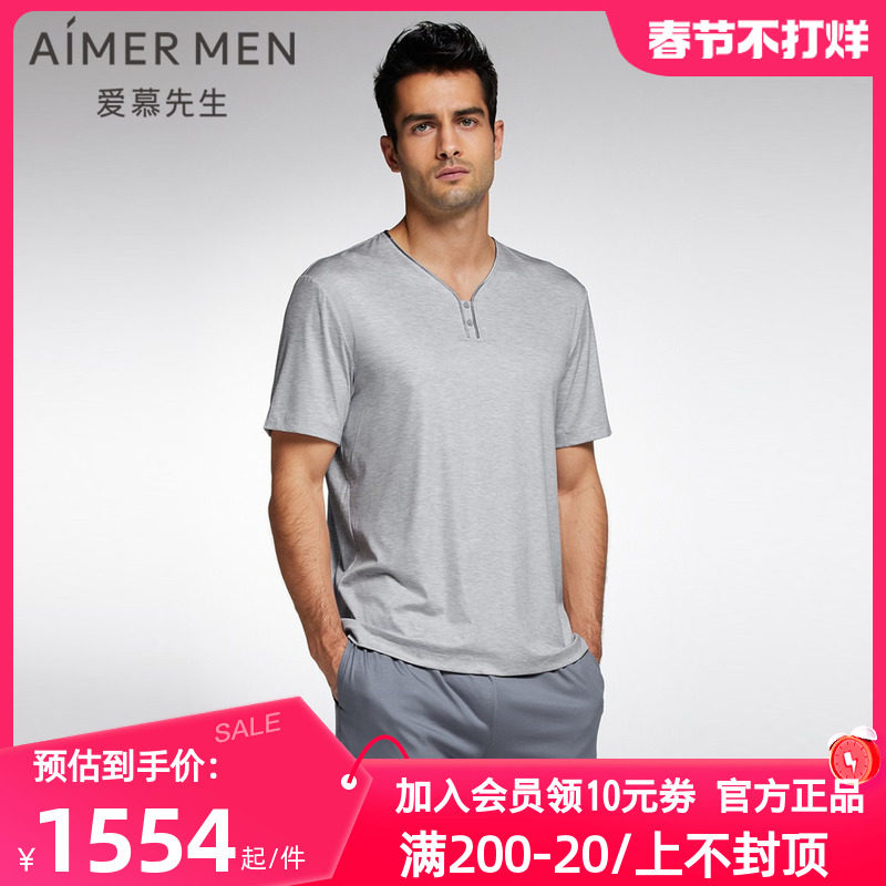 爱慕先生特价清仓男春夏纵享丝滑家居Y领套头短袖NS41D773
