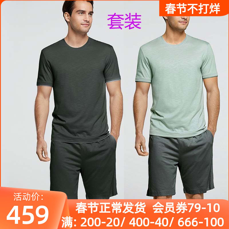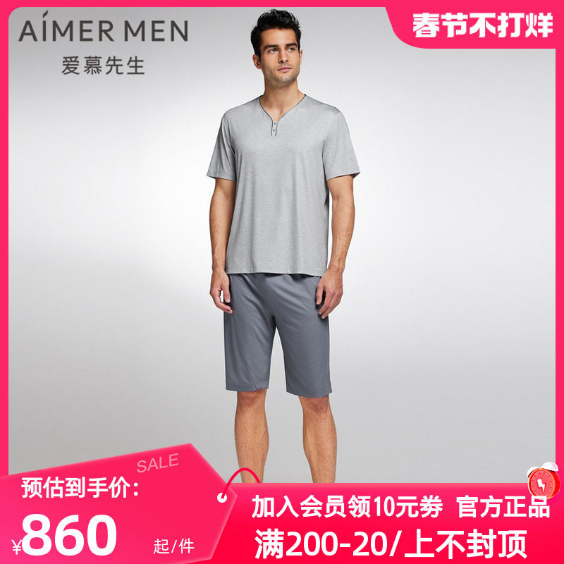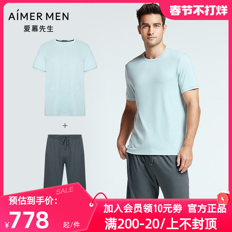 爱慕先生正品短袖T恤+短裤 男士春夏棉质透气睡衣家居服套装