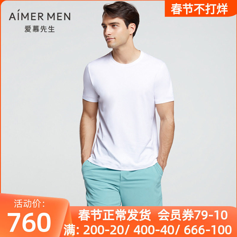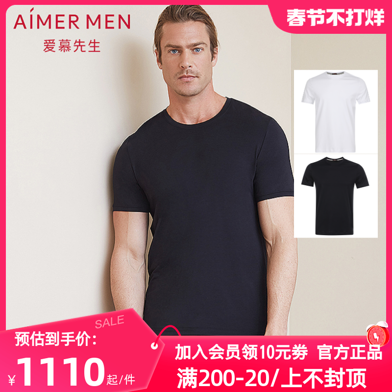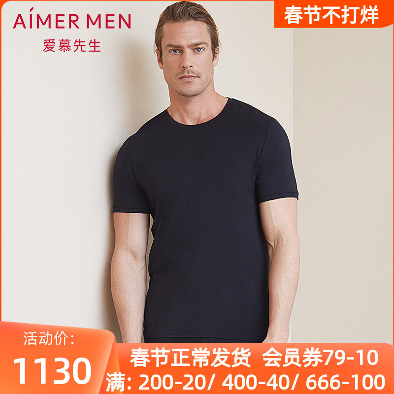 爱慕先生莫代尔舒爽圆领基础薄款男士短袖T恤上衣12355