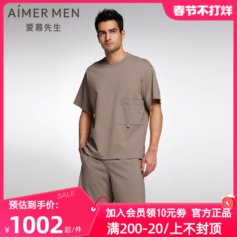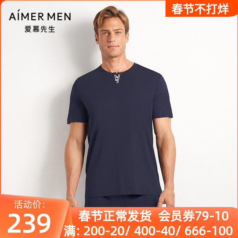 爱慕先生正品夏季睡衣男金戈铁马棉质圆领短袖T恤可外穿NS81J832