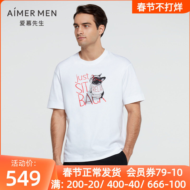 爱慕先生正品男士款萌宠家居全棉T恤半袖家居服短袖上衣NS41E371