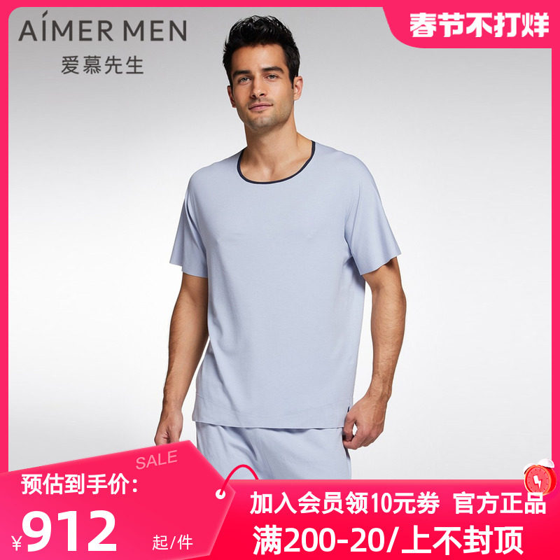 爱慕先生正品新品薄款棉莫代尔睡衣舒适男士家居短袖上衣NS41F701