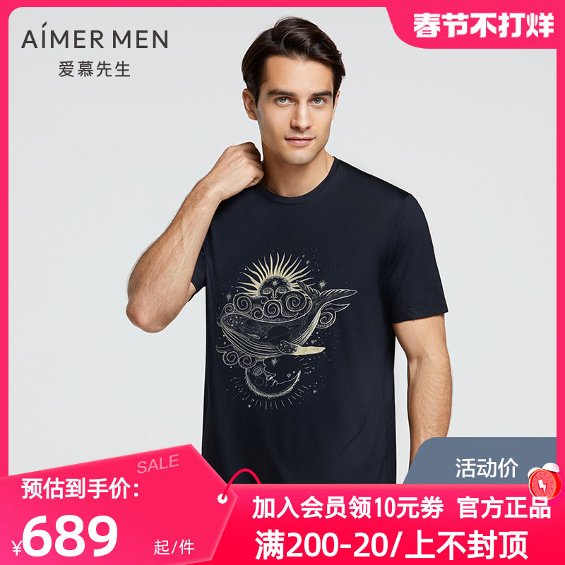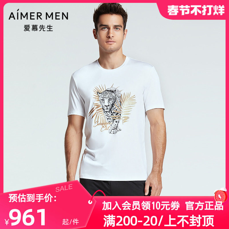爱慕先生正品外穿男士款限量创意T恤系列莫代尔圆领短袖NS81F754