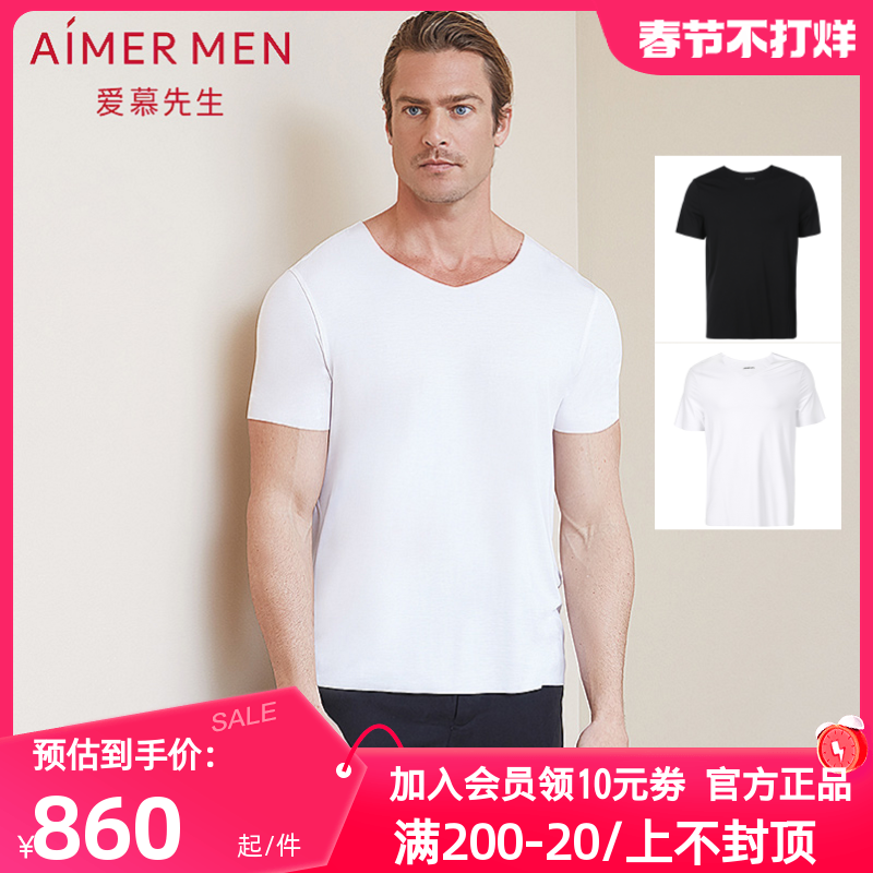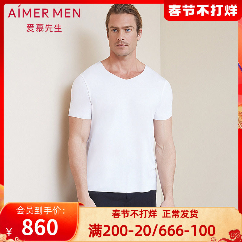 爱慕先生正品夏季男士薄款V领无痕莫代尔睡衣纯色短袖T恤NS81B981
